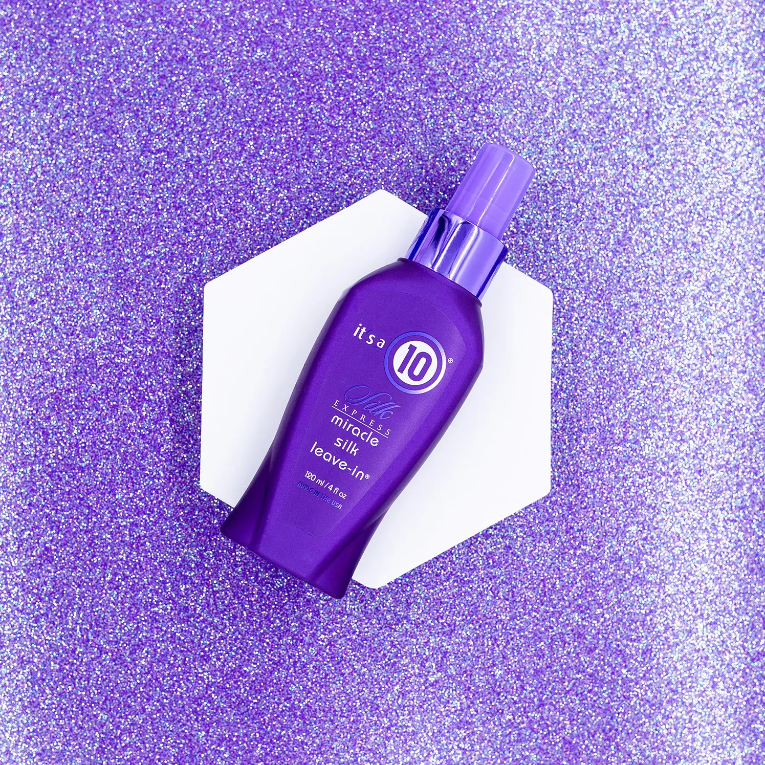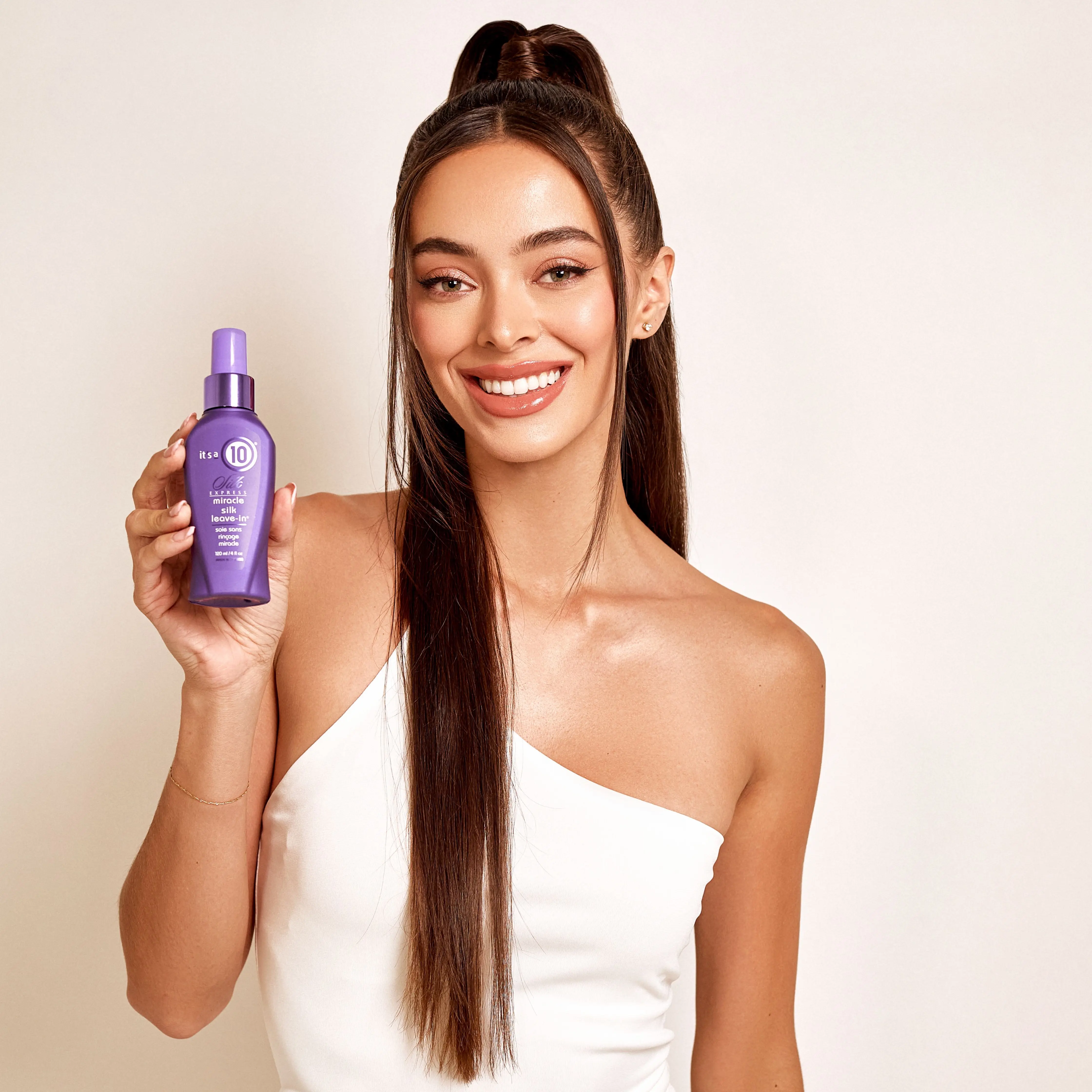 And, like you’d expect from silk, It’s a 10 Silk Express Miracle Silk Leave-In delivers a lighter-than-air finish.
