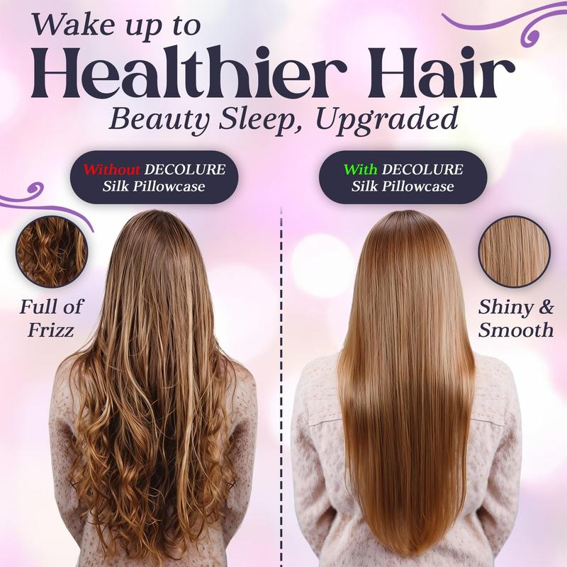 Elevate your sleep with the DECOLURE premium silk pillowcase, crafted from 100% Pure Mulberry Silk – highest grade 30 Momme, 6A+ quality. Designed for ultimate comfort, this silky-soft and tear-resistant pillowcase helps improve hair, skin, and sleep quality. Its natural temperature-regulating and moisture-wicking properties keep you cool, dry, and refreshed throughout the night.
