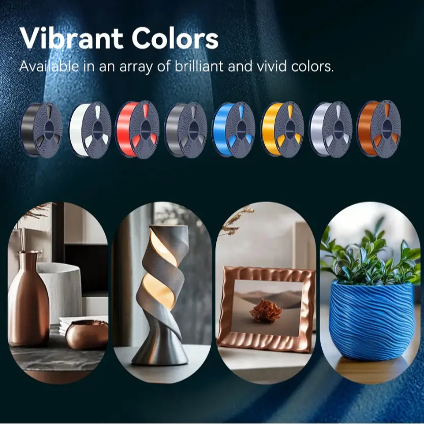 [SUNLU Shiny SILK PLA+ Filament] SUNLU SILK PLA PLUS filament offers a stunningly smooth finish that surpasses standard PLA PLUS. Its silky, glossy surface requires no post-print polishing, making it ideal for artistic and craft projects. This filament adds a luxurious sheen to any 3D print, enhancing your creations with a brilliant silk-like appearance.