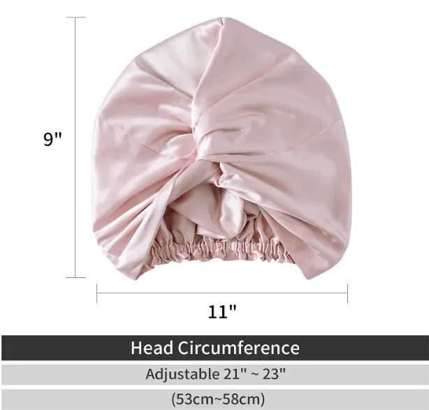 ·THE BENEFITS of SILK BONNET: The perfect night-time companion, this pure silk hair turban is designed to protect hair from breakage and frizz and lock in your natural hair oils. 100% Mulberry silk hair wrap have a soft, smooth texture that allows hair to slide across its surface, damage free. In the same way, silk helps your skin retain moisture, it can keep your hair softer too. Wearing your hair overnight in a silk hair bonnet is a naturally nourishing conditioning treatment.