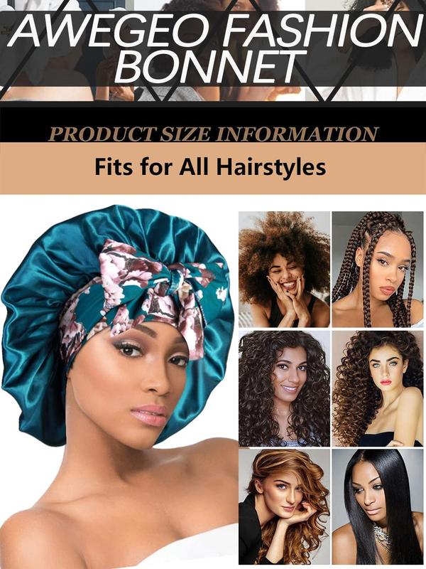 Silky Satin Sleeping Bonnet, Adjustable Sleeping Bonnet with Printed Tie Design, Soft & Skin-friendly for Nighttime Curl Retention & Natural Hair Maintenance, Heatless, Sleep Bonnets