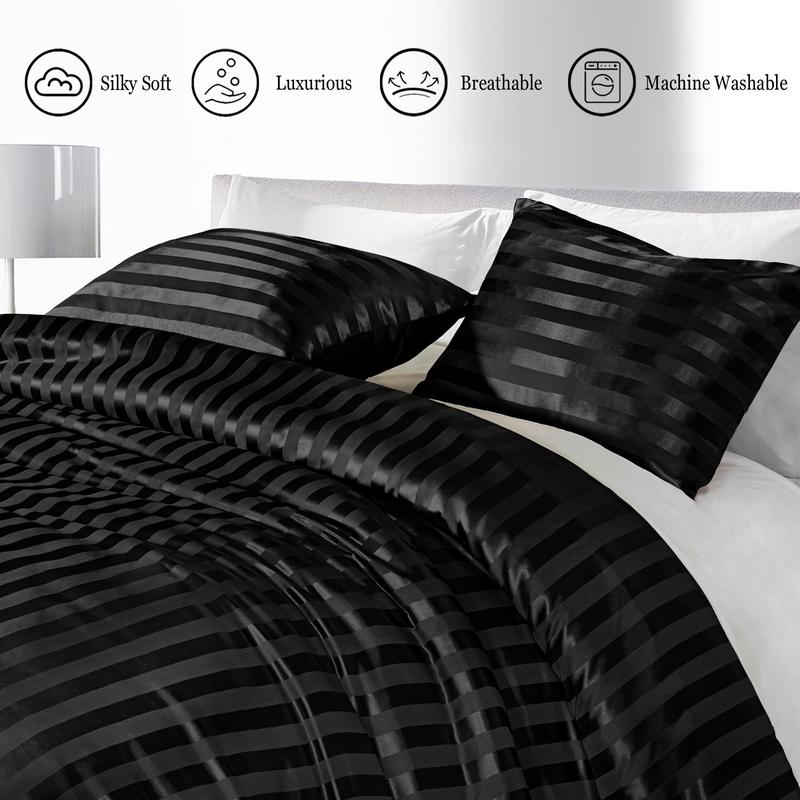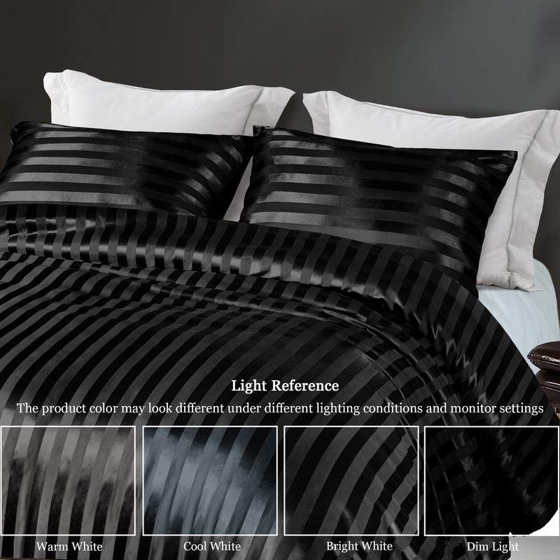 Unique design: This ultra comfortable bedding set is double-side design. Top side of the duvet is stripe satin fabric with an elegant style box stitching that prevent the fill from shifting, reflecting charming pearly lustre in the light; The other side is made of brushed fabric, which makes the duvet more breathable and long-lasting than cotton fabric; You could choose either one side to cover as you like