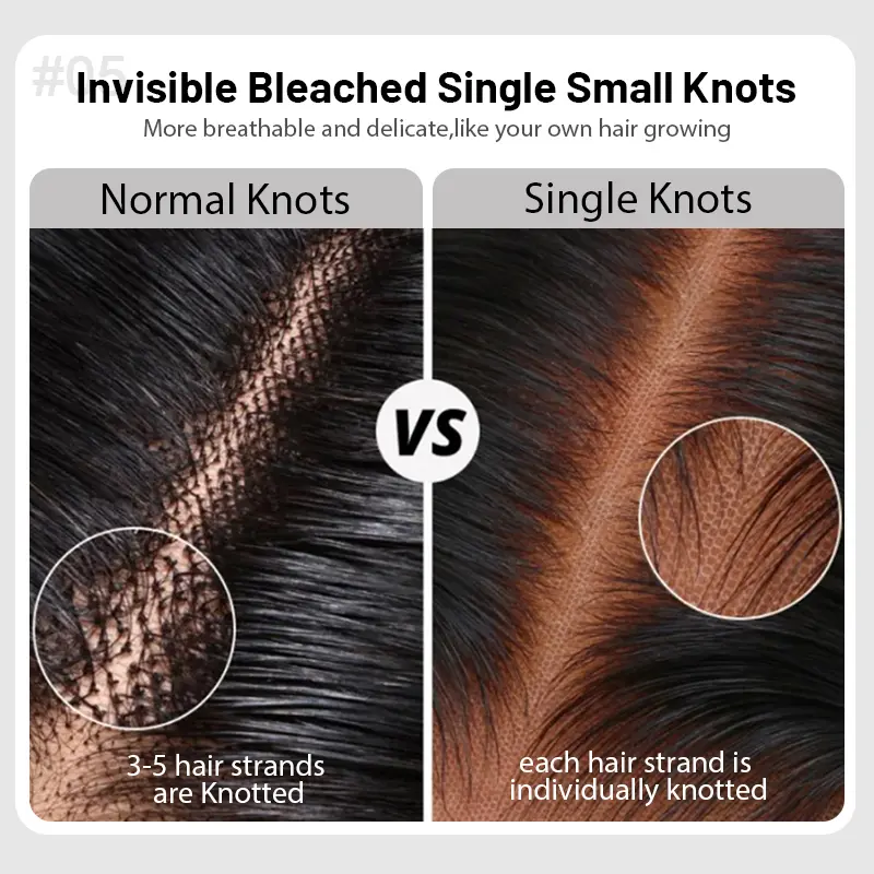 - Features: Big Area 13x4 13x6 Lace for versatile styling. Pre-bleached tiny knots for a natural scalp appearance. Pre-plucked natural hairline for a smooth transition to the forehead.