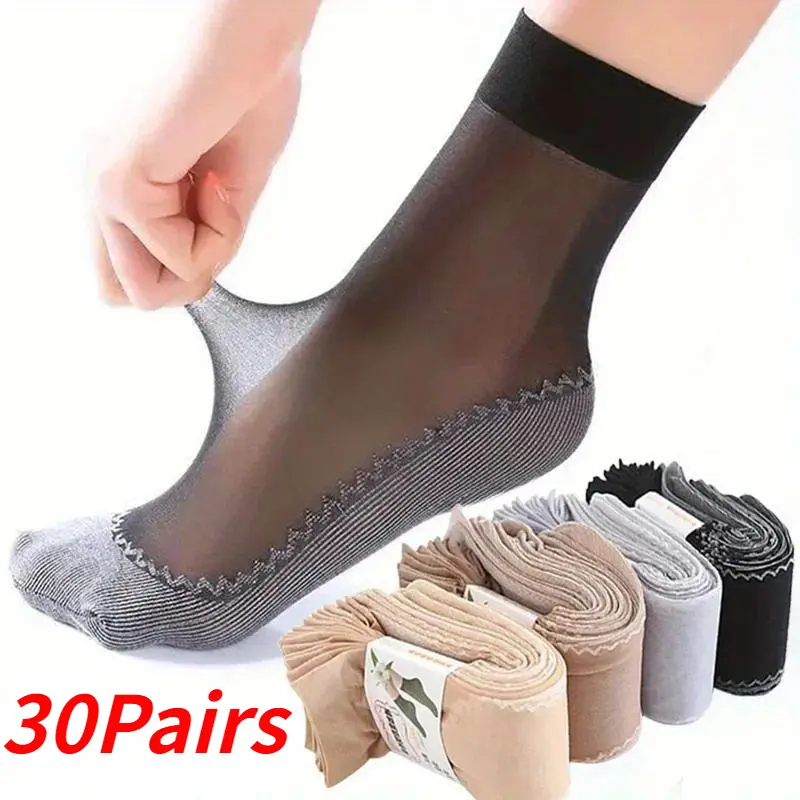 30pairs Random Silky Velvet Ankle Short Sox Elastic Lace Socks Women Transparent Ultrathin Female Mesh Non-Slip Bottom Splice Sock SpringStatements