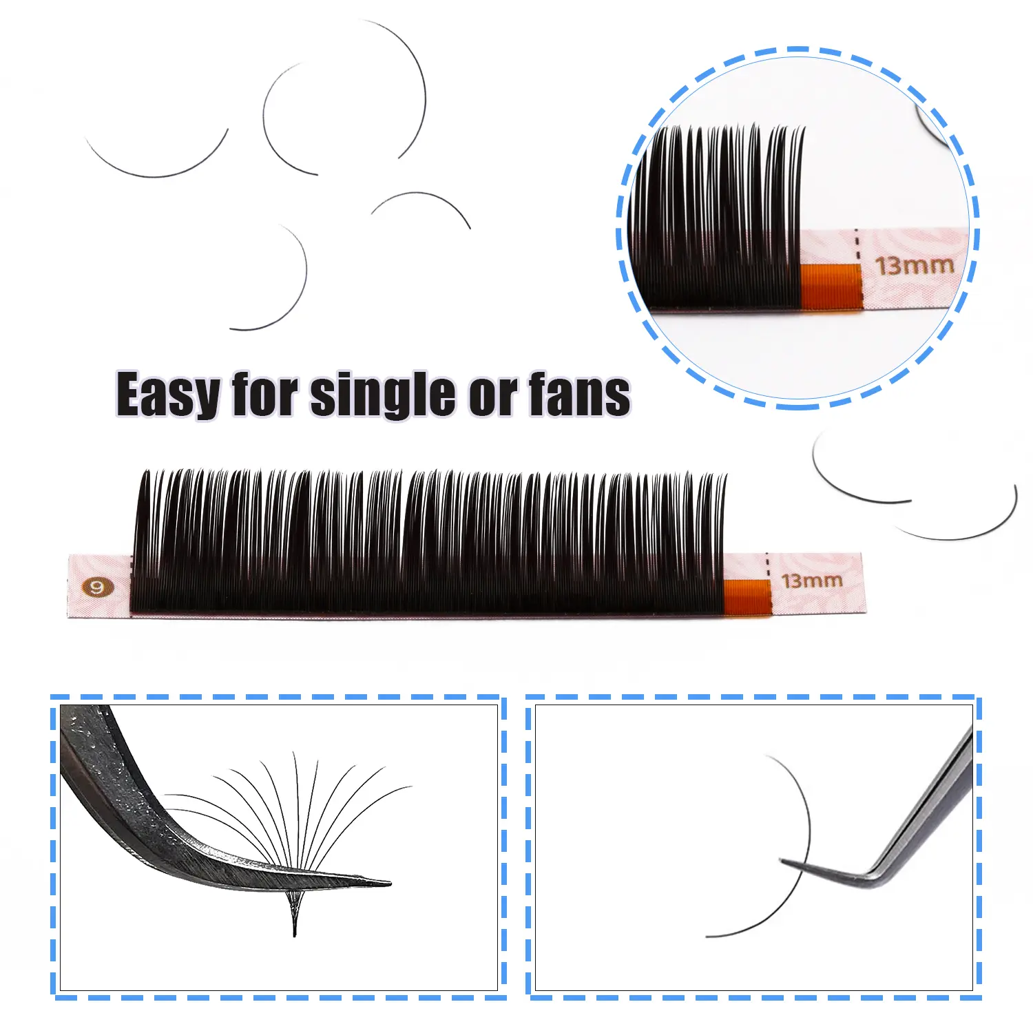 ·Curl Variety: Available in C, CC, D, and DD curls for customizable lash designs.