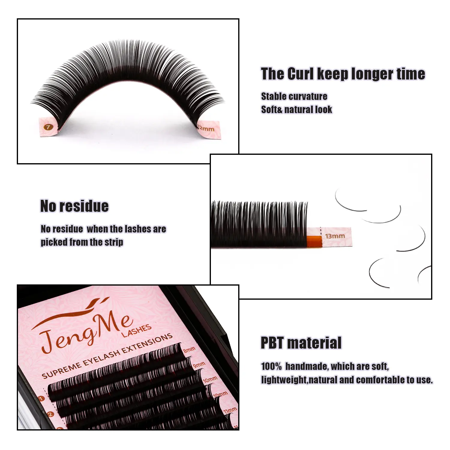 Our lashes are meticulously crafted to maintain their curl and softness over time. The deep matte black color enhances the eyes while ensuring comfort throughout the day. Ideal for both beginners and professional lash artists looking for a consistent, high-quality lash product.
