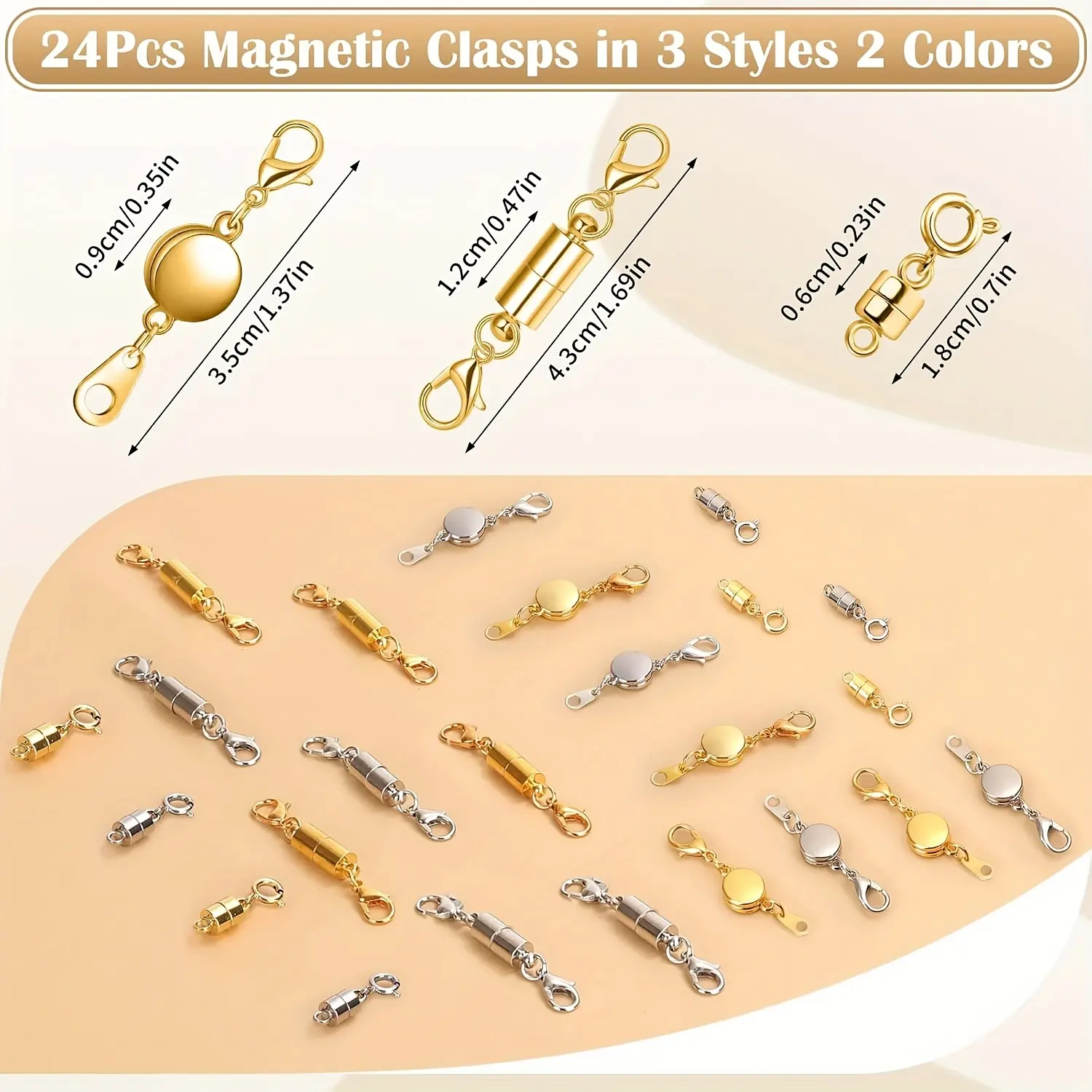 24pcs Necklace Magnetic Clasps And Closures Lobster Clasps Silvery Magnetic Jewelry Clasps Locking Necklace Extender Round Rhinestone Ball Magnetic Clasps for Bracelets Making Multiple Styles