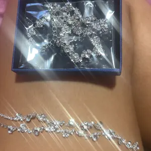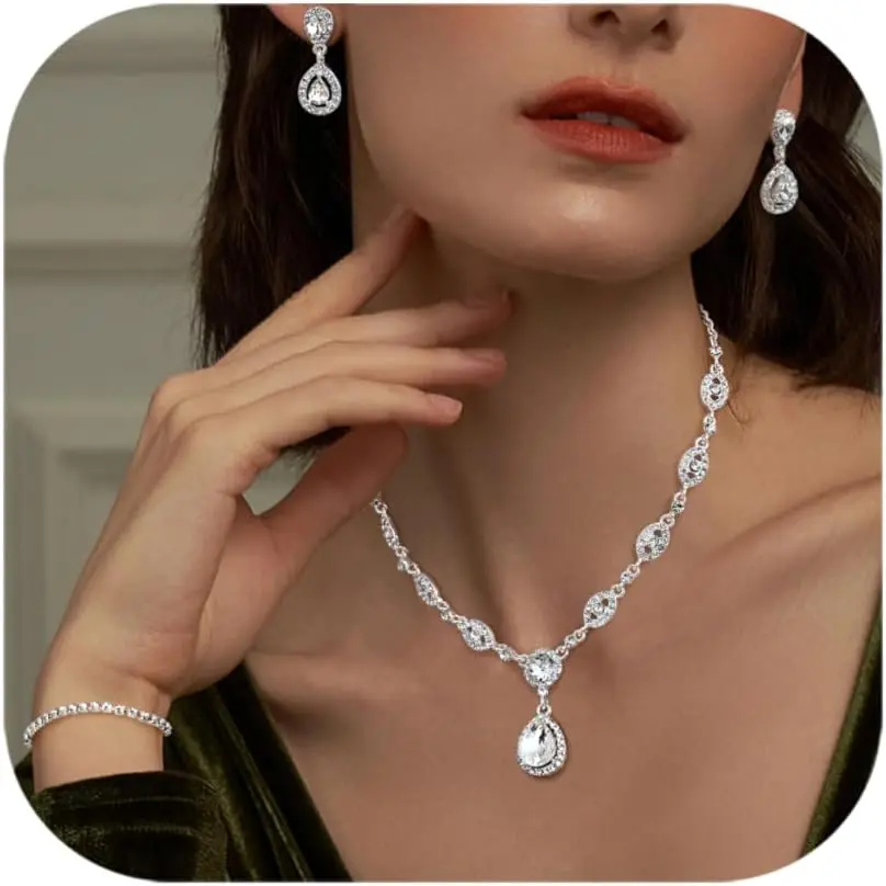 Looking for the perfect jewelry set for your wedding day or prom night? This stunning set includes a rhinestone necklace and earrings. It will have you glowing from head to toe. Ideal for brides, bridesmaids, and anyone adding sparkle to their special occasion.