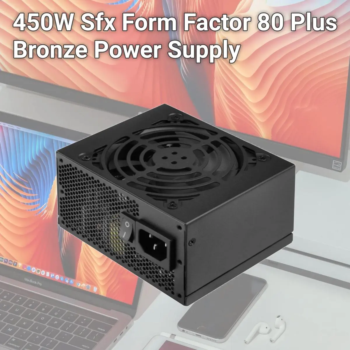 We are pride ourselves in providing the highest level of standards in designing computer enclosures, power supplies, and accessories. Our pursuit for the first class aesthetic appeal is relentless and our devoted team is constantly searching for the best technologies that suit end-users with different needs and will make our products as technologically sound as they are very unique piece and beautiful. Features Supports standard SFX form Factor and ATX via included bracket. 450W continuous power output at 50 operating temperature rated for 24/7 operation. 80 plus Bronze level efficiency ( 82%85% efficiency at 20%100% loading). Class-leading single +12V rail. Silent running 92mm fan ( V3.0). Specifications Dimensions 4" H x 7" W x 9" L.