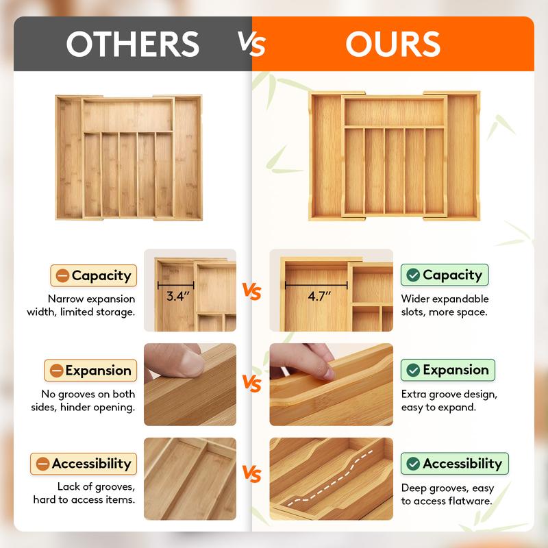 The organizer’s grooves offer convenient tableware access, while the smooth, polished edges allow for easy drawer movement. Cleaning is hassle-free — simply rinse with water and wipe dry.