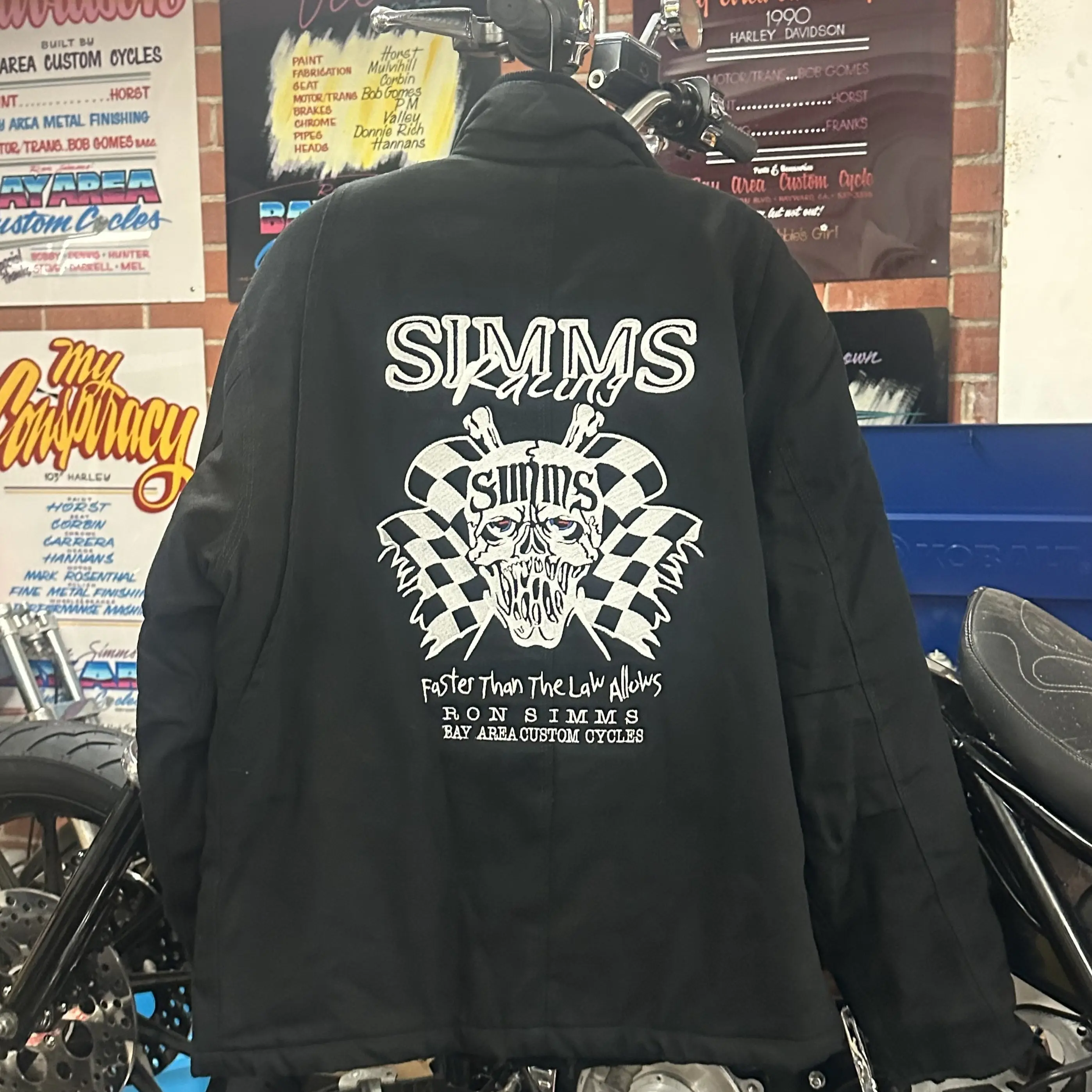 SOLID BLACK JACKET WITH SIMMS LOGO PRINT.
