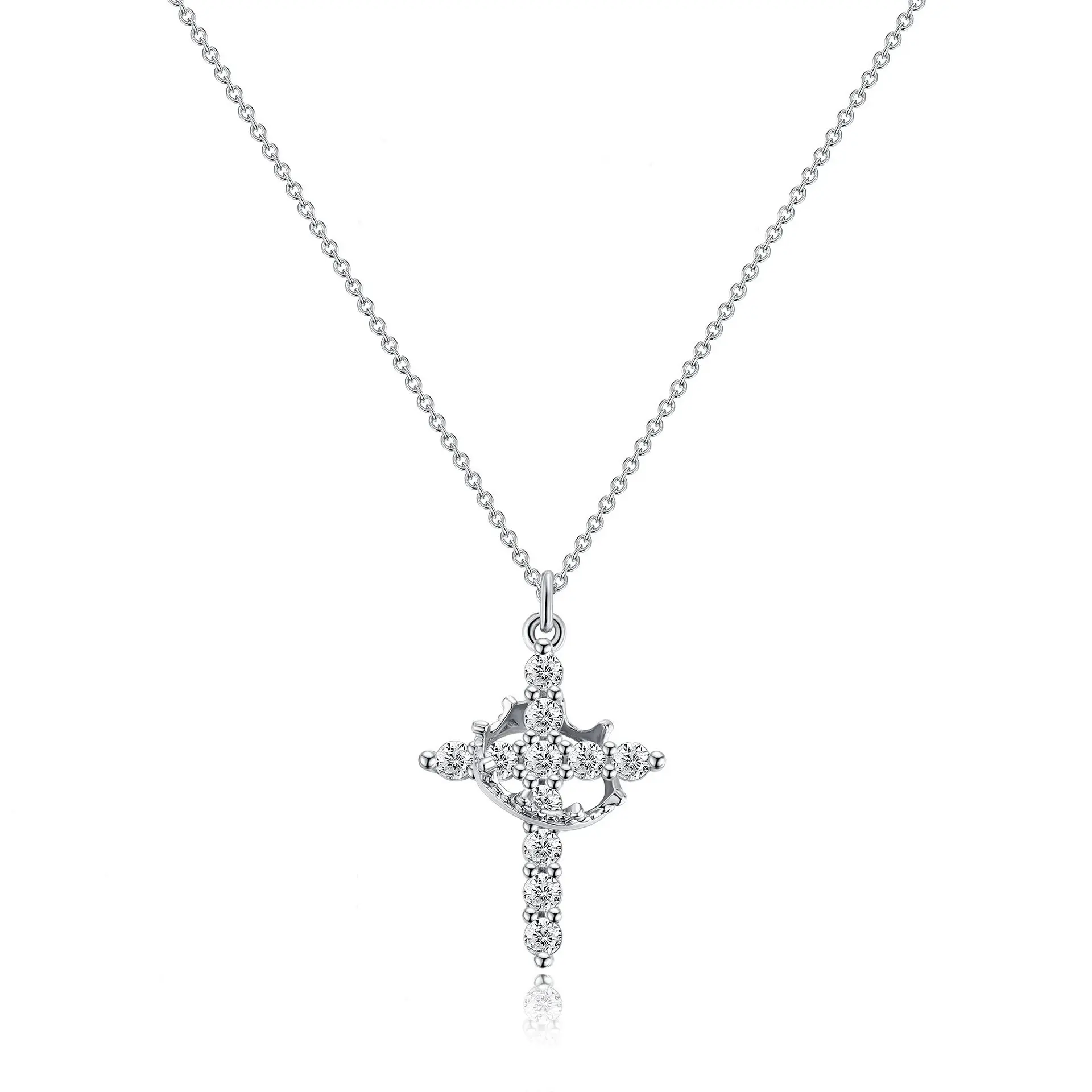 Simple Crown Cross Pendant Gold/Sliver Necklace for Women & Men & Girls Pretty Choker Daily Clothing Decor All-match Exquisite Jewelry,the best Christmas gift