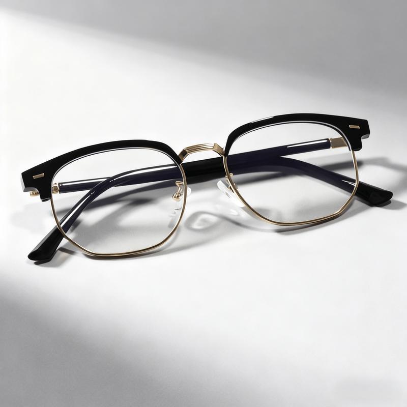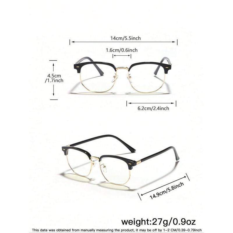 Imagine slipping on this classic half-rim pair of glasses and instantly transforming into a sophisticated urban gentleman, radiating confident glow! This fashionable optical eyewear features a black upper frame mixed with a gold lower frame design, with rectangular lens contours that are sleek and grand, blending retro charm with modern minimalism to perfectly embody understated luxury. The crystal-clear lenses are pristine and can be customized to your prescription, providing sharp and comfortable vision, while built-in blue light blocking technology filters harmful blue light, reducing eye strain for extended screen time in work and life. The arms are smooth and durable, with soft nose pads for a snug fit, lightweight construction ensuring no burden for all-day wear. Whether in business meetings, leisurely reading, street strolls, or date gatherings, these glasses elevate your overall aura, making you appear more professional and stylish. Premium materials are scratch-resistant, easy to clean and maintain, built to last through countless memorable moments. Grab a pair today, redefine your daily style, and infuse every day with surprises and boundless charm! Don't wait—join the eyewear trend and become the brightest standout in any crowd!#eyeglasses #glasses #eyewear #eyewearfashion #fashion