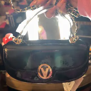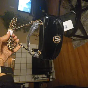 Ok my obsession is bags makeup perfum and skin care now this cute little shiny purse is going with me on my honeymoon and I have the perfect dress for it it’s so cute can hold my iPhone 15 pro max and vape and keys and my tide pen it’s great for a night out and it comes w/ crossbody Chain I love it