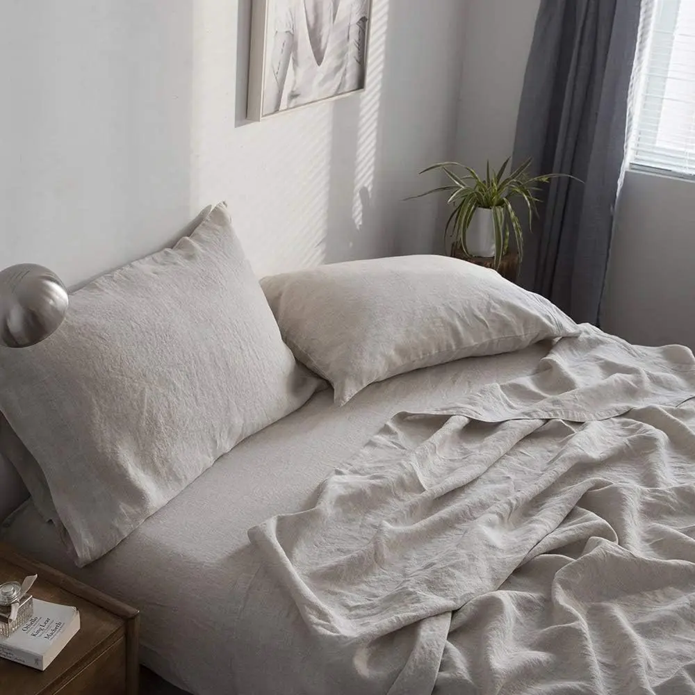 ·[Advantage]: Linen is one of the best fabrics for health. The linen keeps you warm on chilly nights and cool on warm nights, an "investment piece" for your bedroom. It's soft like Egyptian cotton and medium weight. Linen has nice temperature moderation and breath-ability to help you fall asleep faster and sleep sounder. The unique material is especially suitable for hot climates regions. The fabric will be softer after repeated washing, and the durability will not be lost.