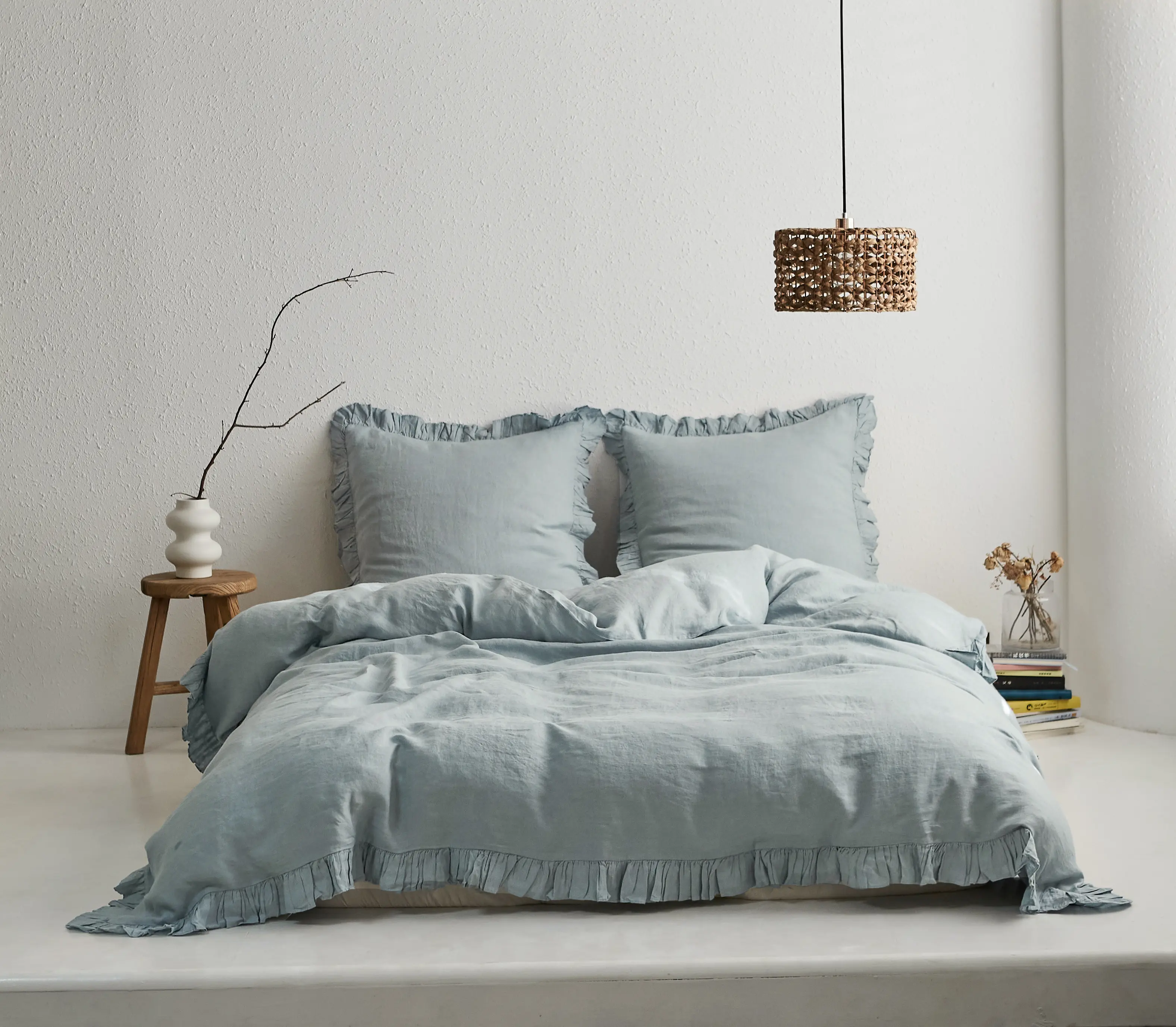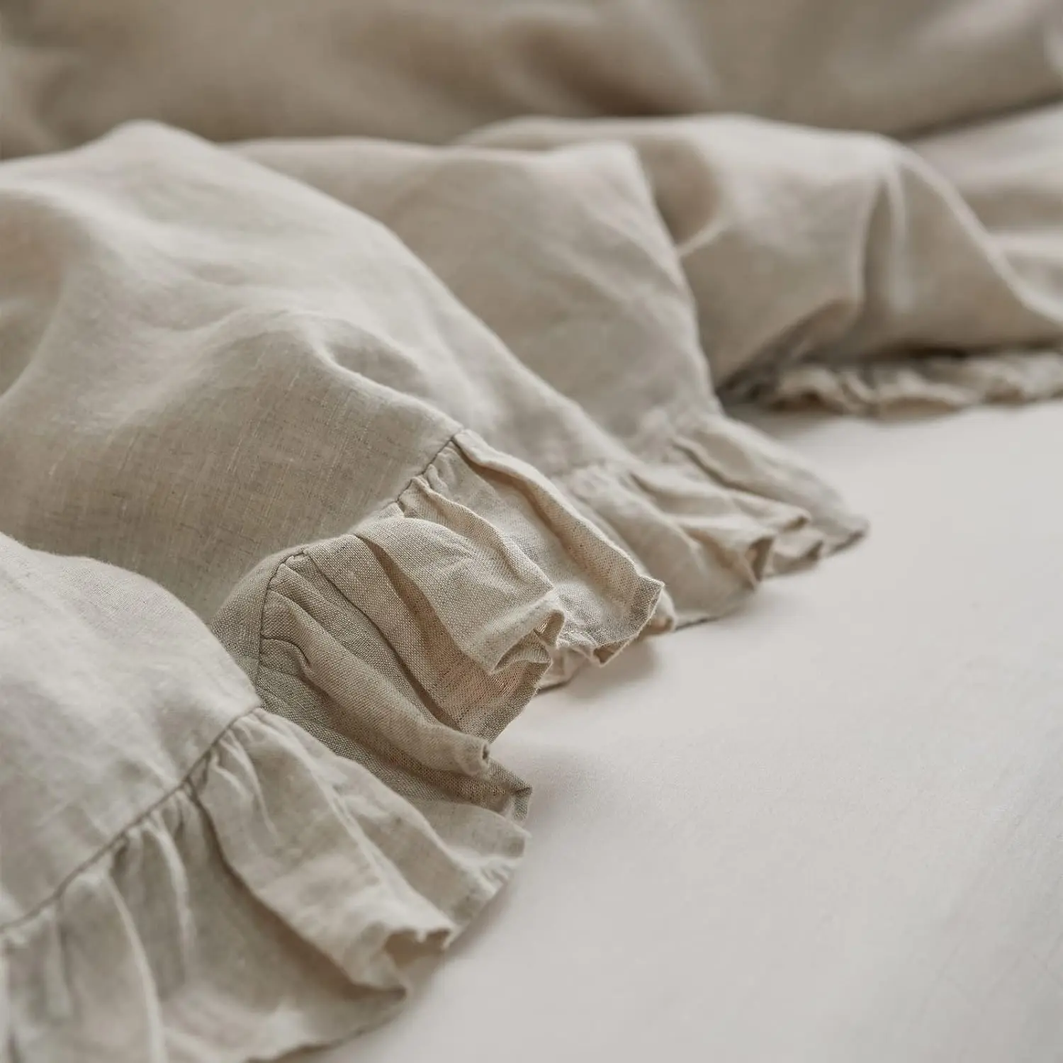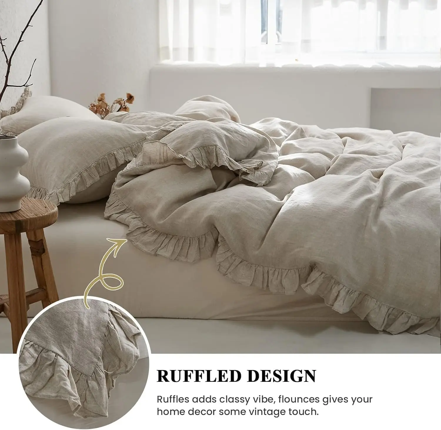 ·Ultimate Comfort: The linen ruffle duvet cover is made of 100% natural linen, experience the utmost comfort with the soft and breathable linen material that helps regulate temperature, ensuring a restful night's sleep. Certified by OEKO-TEX Standard 100.