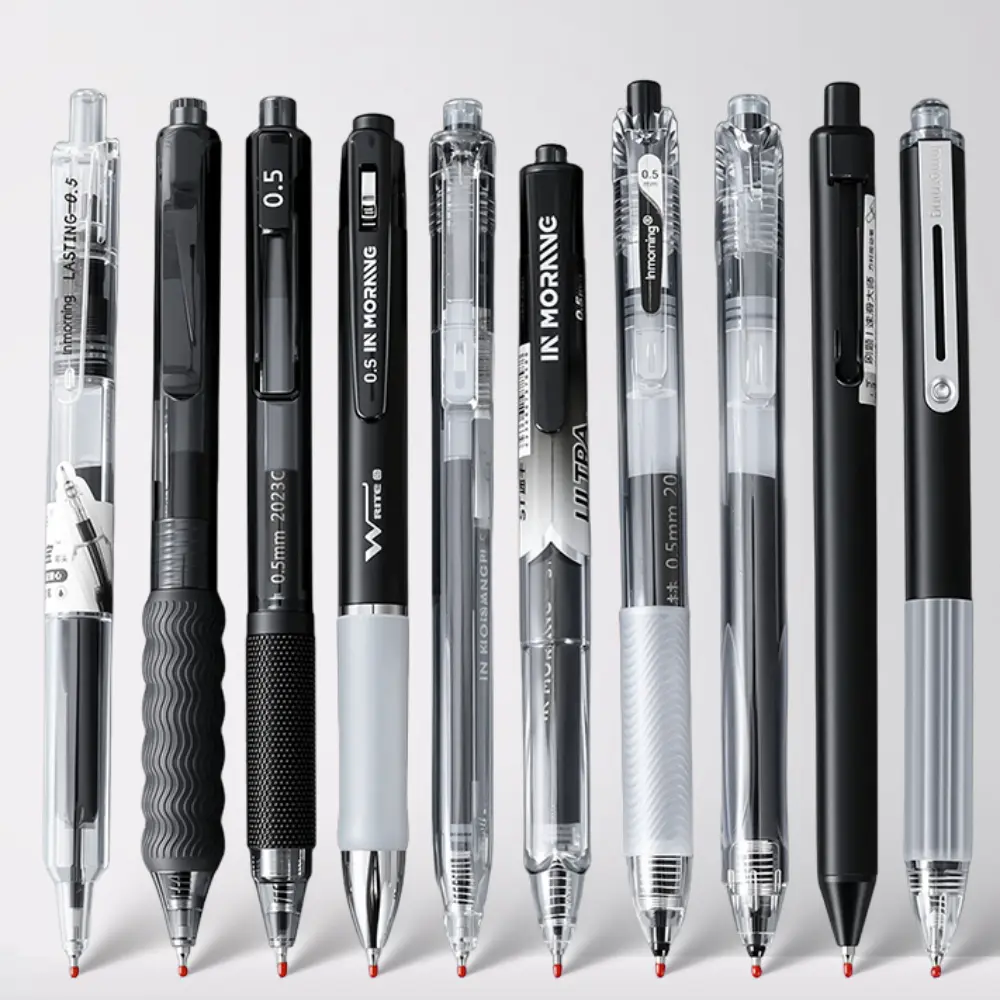 3 styles, 10 pens each, simple solid translucent dual design gel pens 0.5mm, smooth non bleeding quick dry pens exams practice, DIY study office writing, large capacity black gel pens