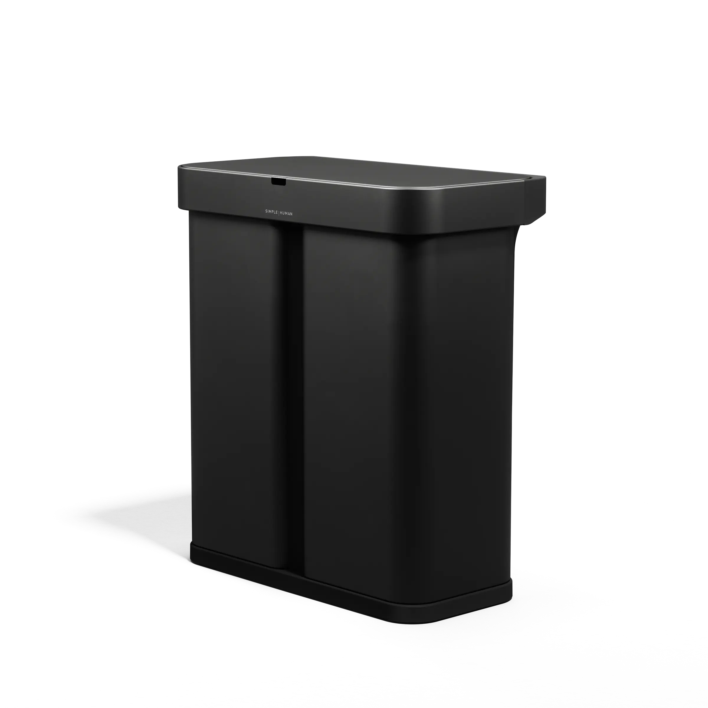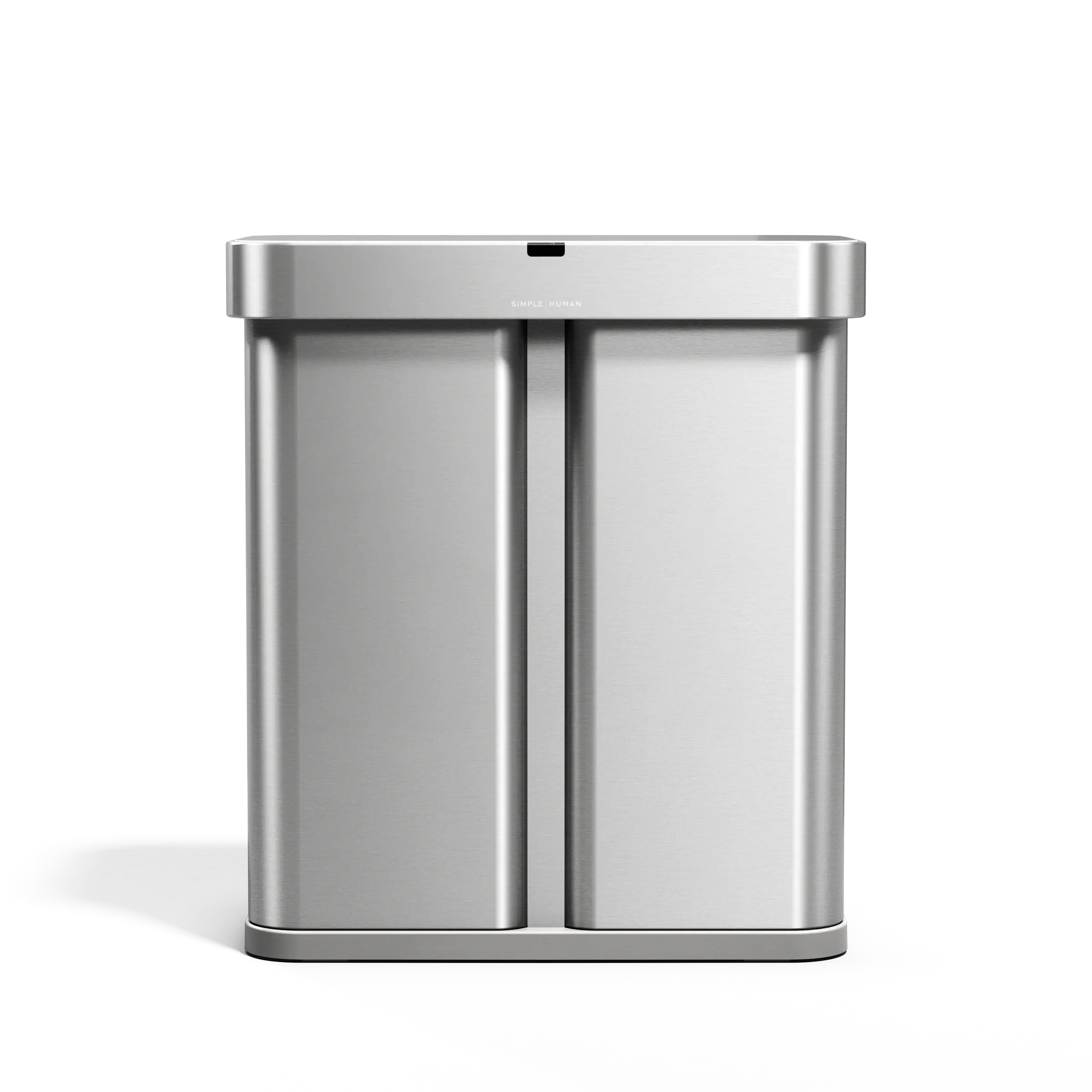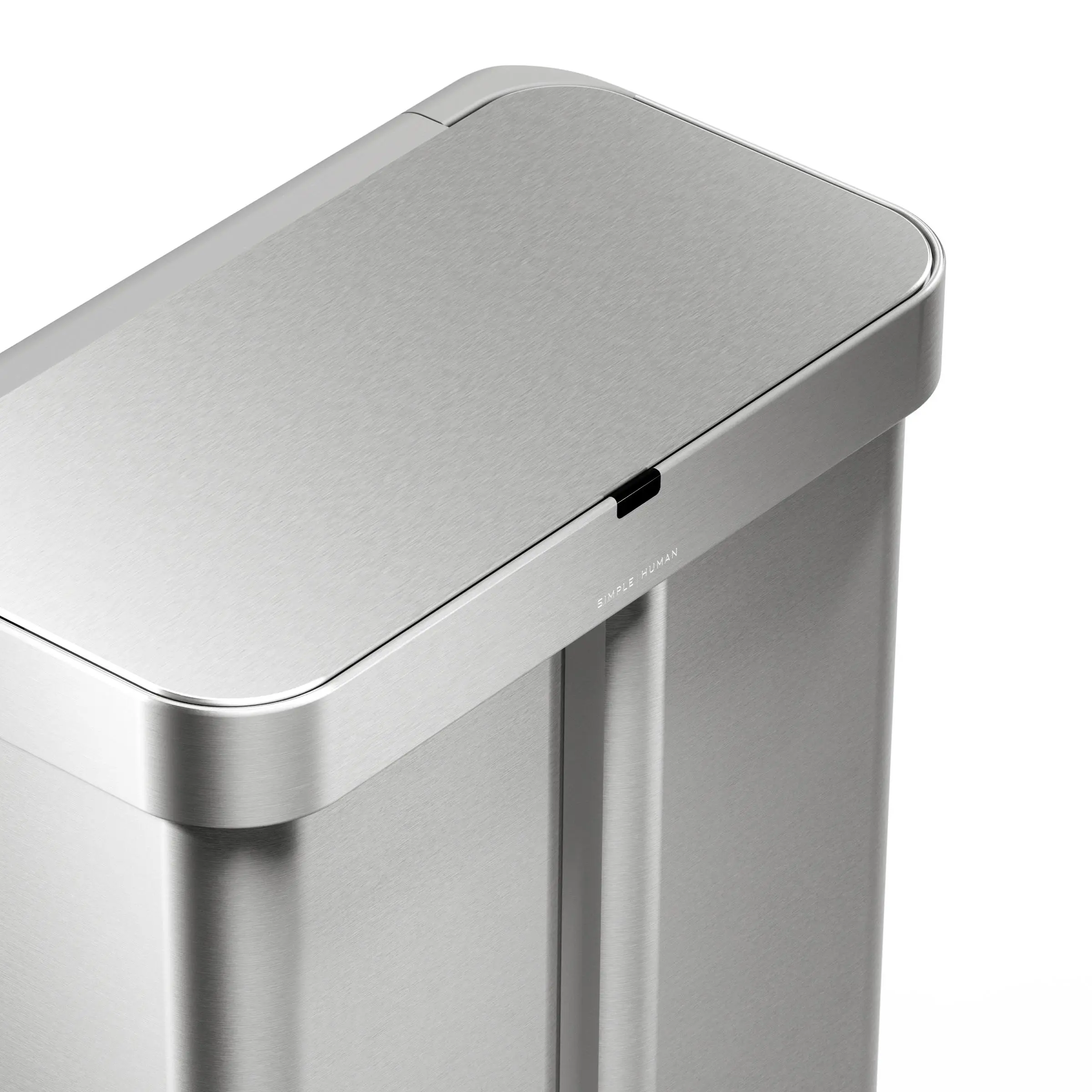 Just say, "open can" and the lid opens automatically, so throwing trash away is quick, efficient and hassle-free. You can also say, “stay open” while performing longer chores or cooking, and the lid won’t close until you say, “close can” (or it will close automatically after 10 minutes). It also has a motion sensor that opens the can with a wave of your hand and is smart enough to adapt to you and the surrounding environment — no false triggers, no unexpected lid closures. Dual compartments make it easy to neatly sort your trash and recyclables in one convenient, space-efficient place. On one side, an innovative liner pocket stores and dispenses liners from inside the can for a faster liner change. The other side has a convenient handled bucket for easy lifting and disposal of all your recyclables. The liner rim lifts up for easy access to the liner, then closes to grip and keep it neatly out of sight. The can’s stainless steel surface is protected by an invisible fingerprint-proof silver-ion coating that helps prevent the spread of germs (brushed model only). ADA-compliant. Our Code H custom fit liner fits this can perfectly — no bunching or slipping for a cleaner trash experience. Liner refill packs store easily in this can's liner pocket.