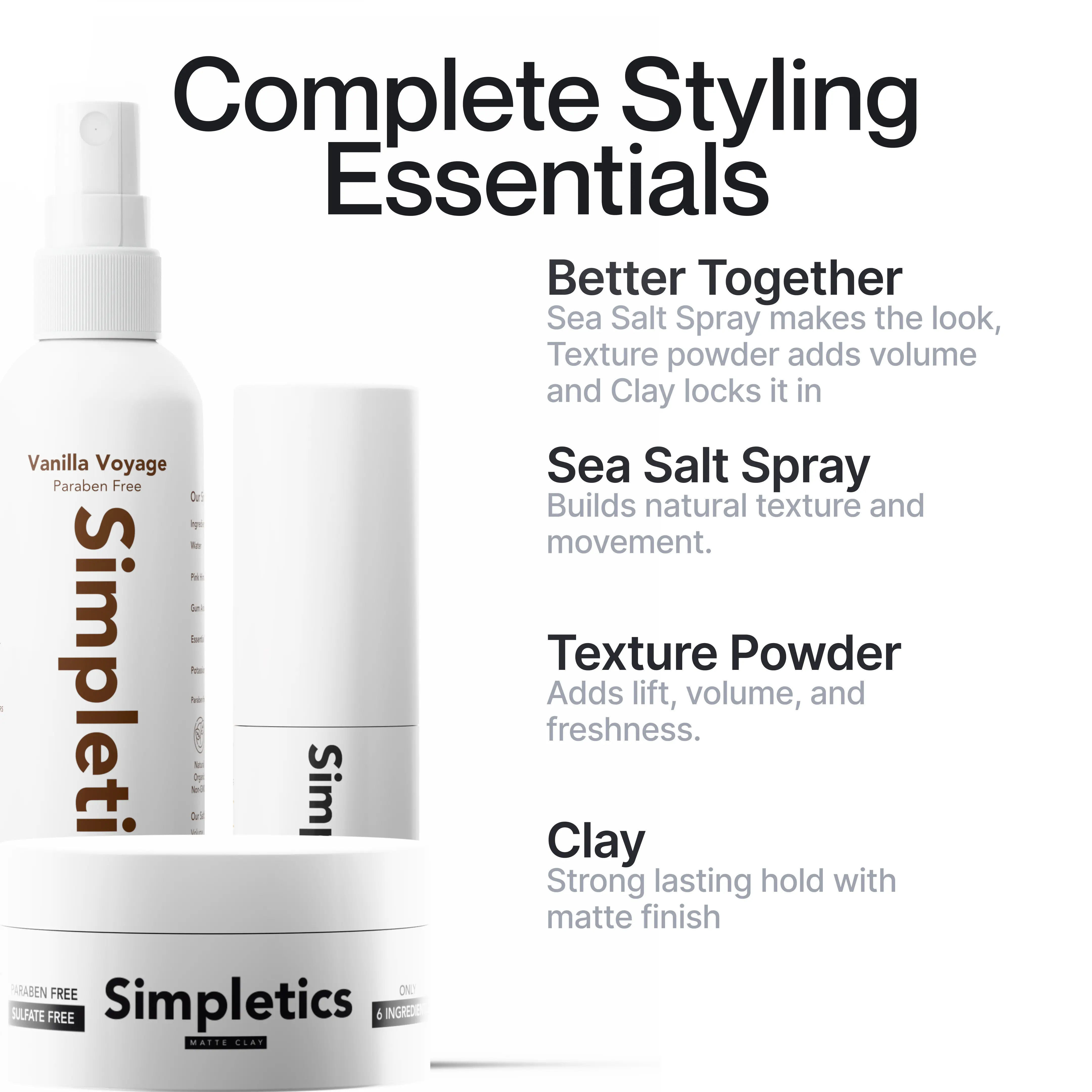 Simpletics Complete Styling Essentials Bundle — the ultimate trio for effortless texture, volume, and control.