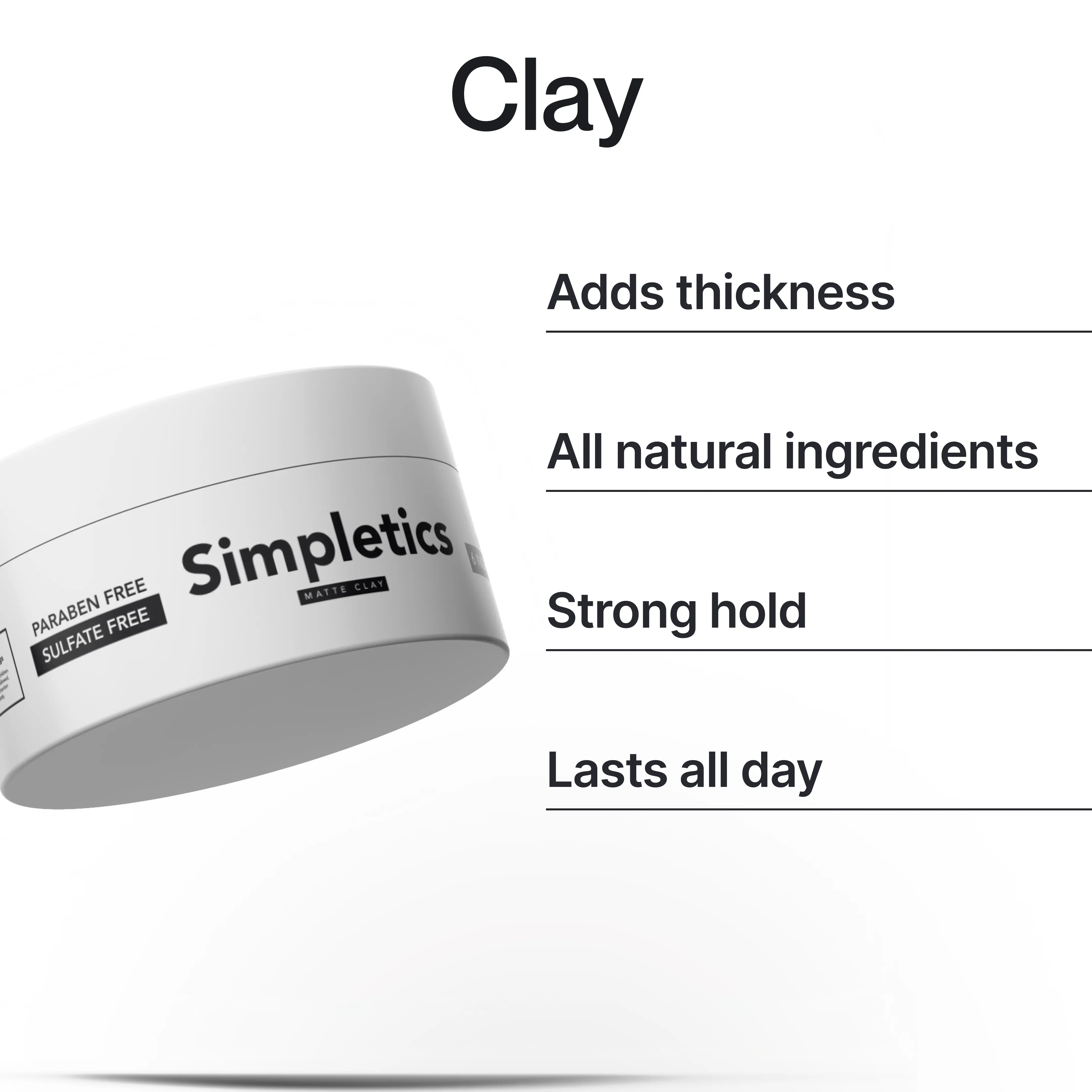 Hair Clay: Defines and holds with a matte finish.