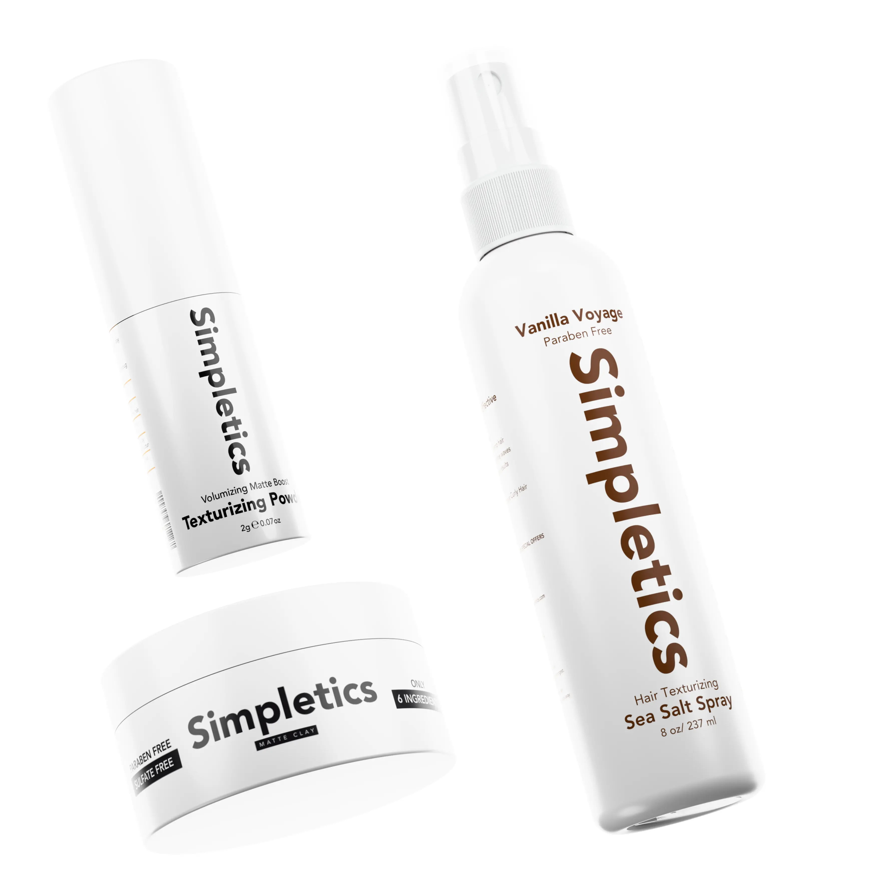 Meet the ultimate three-step routine for effortless, healthy hair. The Simpletics Complete Styling Essentials Bundle combines the Sea Salt Spray, Texture Powder, and Hair Clay — a minimalist system designed to create natural movement, volume, and lasting definition without harsh ingredients. Every product works in harmony for a clean, matte finish that feels lightweight, natural, and re-workable throughout the day.