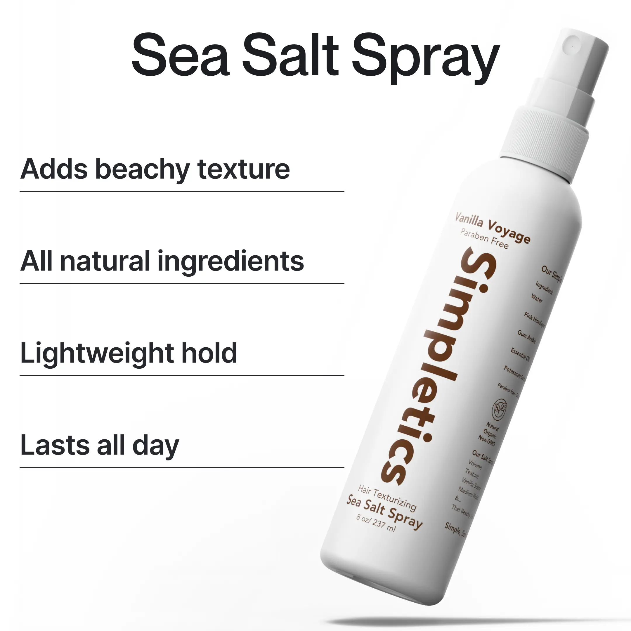 Unlike most salt sprays that dehydrate hair, Simpletics delivers flexible hold and a soft, touchable texture that’s suitable for daily use.
