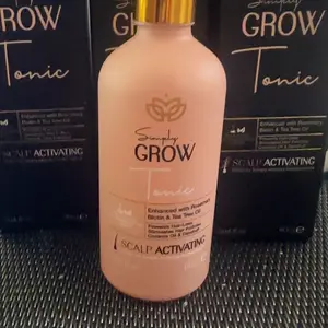 EN. Grow Scalp Activating Tonic is a deeply nourishing scalp treatment that helps prevent hair loss, itching, and dandruff with the power of Biotin, Pelvetia canaliculata extract, and Laminaria digitata extract. Formulated to refresh and revitalize, it delivers a deep clean while cooling and energizing the scalp for healthier hair. For best results, apply Simply Grow Scalp Tonic after showering.