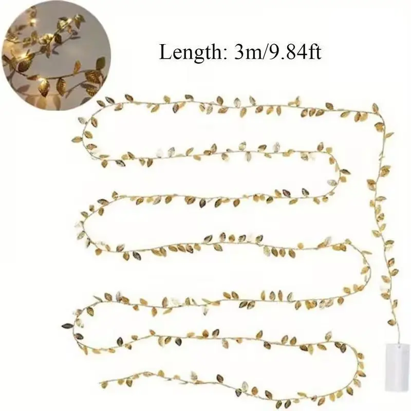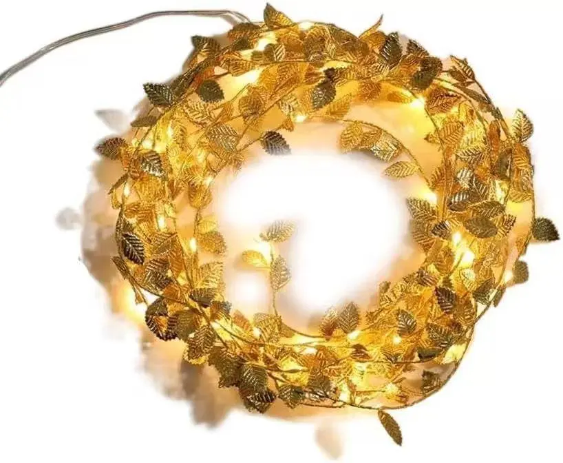 This three-meter-long string of simulated gold leaf lights recreates the delicate, flowing veins of nature with exquisite craftsmanship. Fifty warm-white LED bulbs are evenly nestled among the leaves, emitting a soft, candle-like glow when lit—like being surrounded by golden-edged autumn leaves bathed in sunset. Battery-powered for cordless convenience, it can be effortlessly draped around Christmas tree branches, wedding arches, windows, or table centerpieces. Whether for romantic snowy Christmas evenings, elegant wedding venues, or everyday home ambiance, it instantly elevates any space with refinement and festive charm, making every gathering shine.DIY Crafting Fun: Embrace your creativity with these DIY-friendly vine string lights. Battery operated led decorative lights serve as exceptional indoor outdoor decor, creating a warm and inviting atmosphere for all your events.