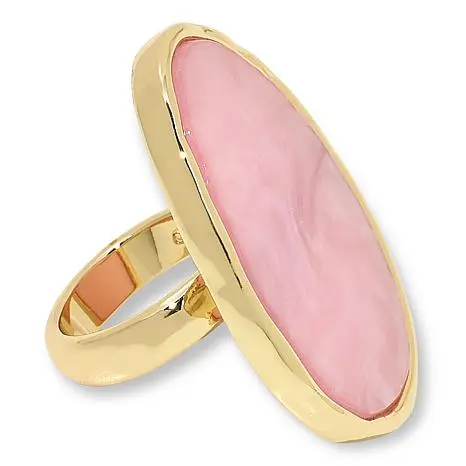 Heidi Daus Heidi Illustrated Simulated Mother-of-Pearl Bangle Cuff Heidi Illustrated? That's Heidi's sense of style illuminated in this mother-of-pearl-inspired ring. The solitaire just glows and really shines as a standalone statement. Approx. 1-1/4"L x 1-5/8"W x 1/4"H; shank 3/16"W Goldtone; hammered, textured finish Crystal/Color Information Blue Cosmopolitan Ring: With acrylic blue simulated mother-of-pearl Pink Mop Ring: With acrylic pink simulated mother-of-pearl White Mother-of-Pearl Ring: With acrylic white simulated mother-of-pearl
