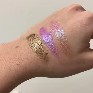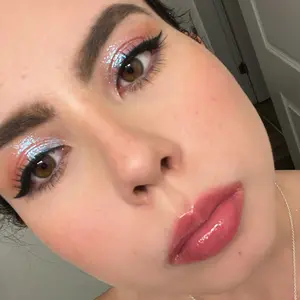 this eyeshadow is stunning!! in the reviews i had only seen people applying a lot and i usually like a more subtle shimmer and this works perfect for both!! It’s super easy to apply also. I used it as my highlight and eyeshadow and it looks stunning! The videos and photos don’t do it full justice