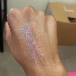 I’m so disappointed in this.. I was expecting a peachy/pink duo chrome with hints of blue in different lighting.. this looks ALL blue. It looks really different on darker skin. Almost like I just rubbed blue glitter all over my eye tbh. The product is also pretty loose. Really wanted to love.