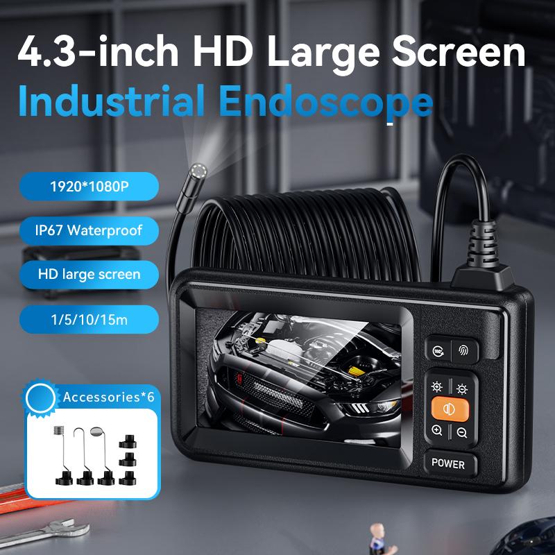 Discover the Single Lens Industrial Endoscope Camera, a 1080P Digital Borescope with a 4.3" LCD screen. This tool features a 7.9mm probe, perfect for detailed inspections. The IP67 waterproof rating ensures durability in various environments. 🌊