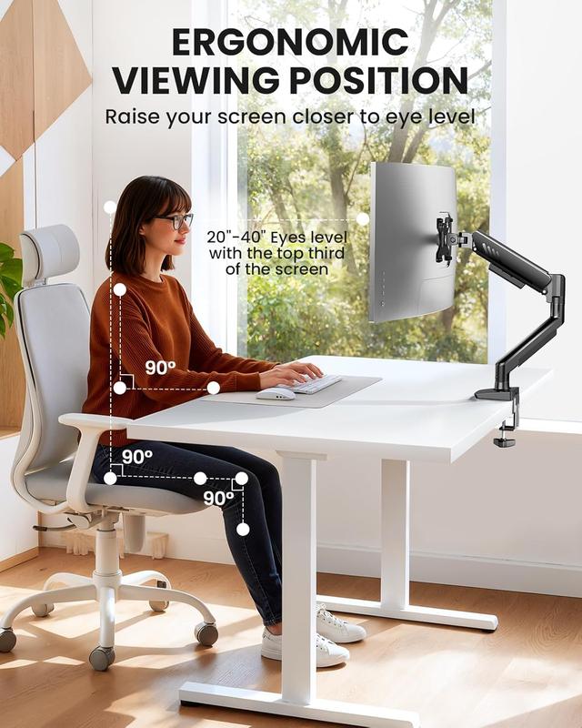Efficient Cable Management and Sleek Design: The updated cable clips are tool-free and easy to open, making cable organization quick and hassle-free. This monitor arm elevates your screen to save desk space and keeps cables neatly organized, helping you maintain a clean and focused workspace.