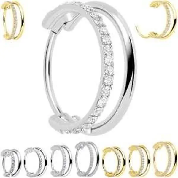 . ASTM F136 Implant Grade Titanium Hinged Circular Ring. CZ Double Hoop Segment Nose Ring; Hypoallergenic Nose Ring.