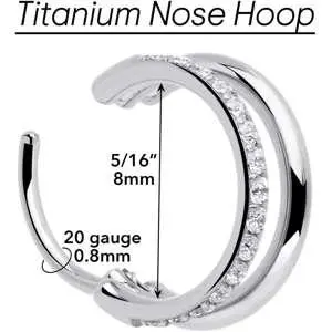 20G Single Row Micro Gem Implant Grade Titanium Hinged Double Hoop Nose Ring