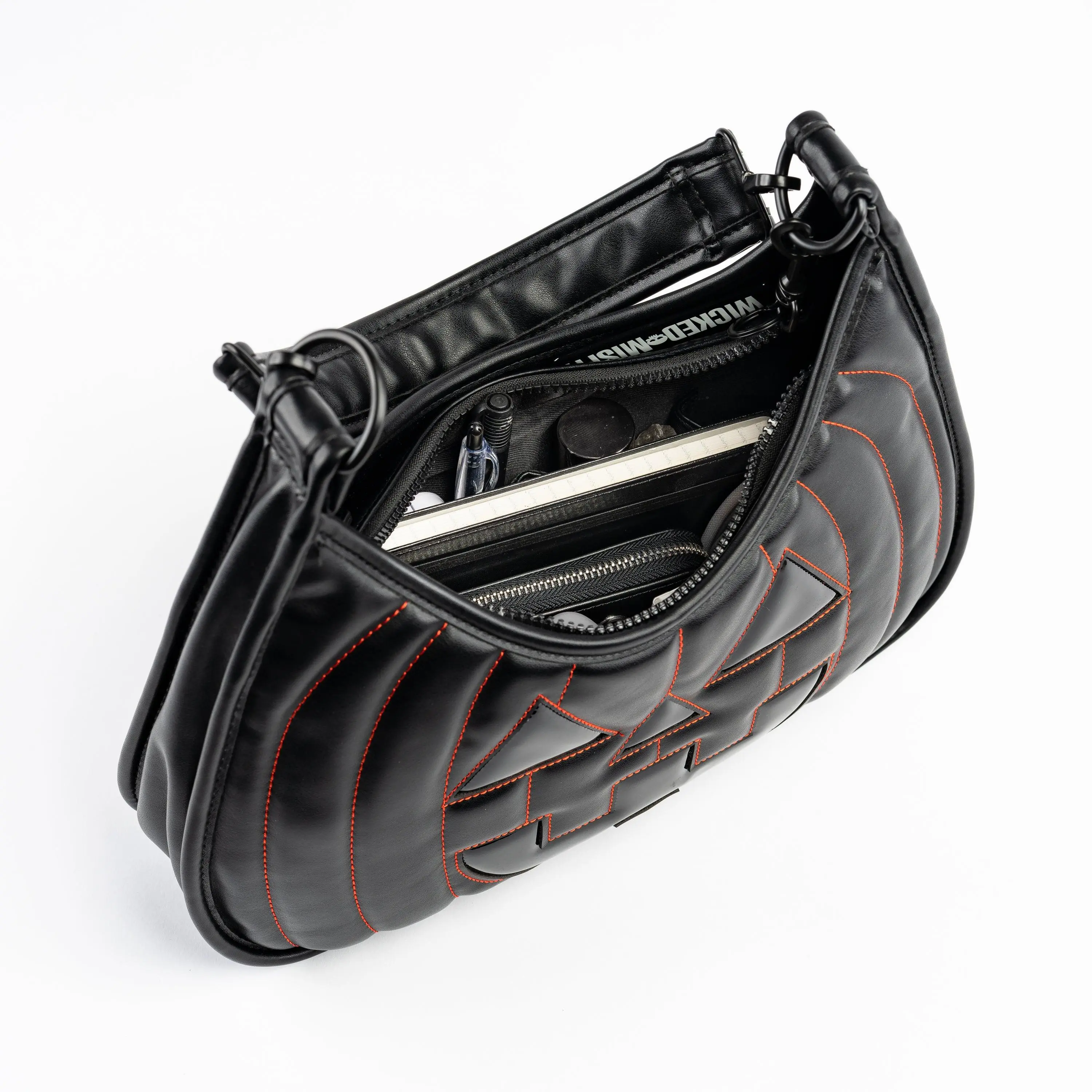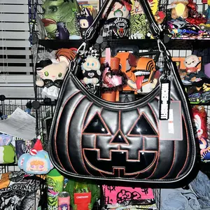 I love the sinister pumpkin shoulder bag purse!!! 😍 It's amazing it's a little bigger than I thought but that's even better for me ❤️🖤.. and delivered was within a week love it thank you Wicked 💀 Misfit. I can't wait to see my purse.