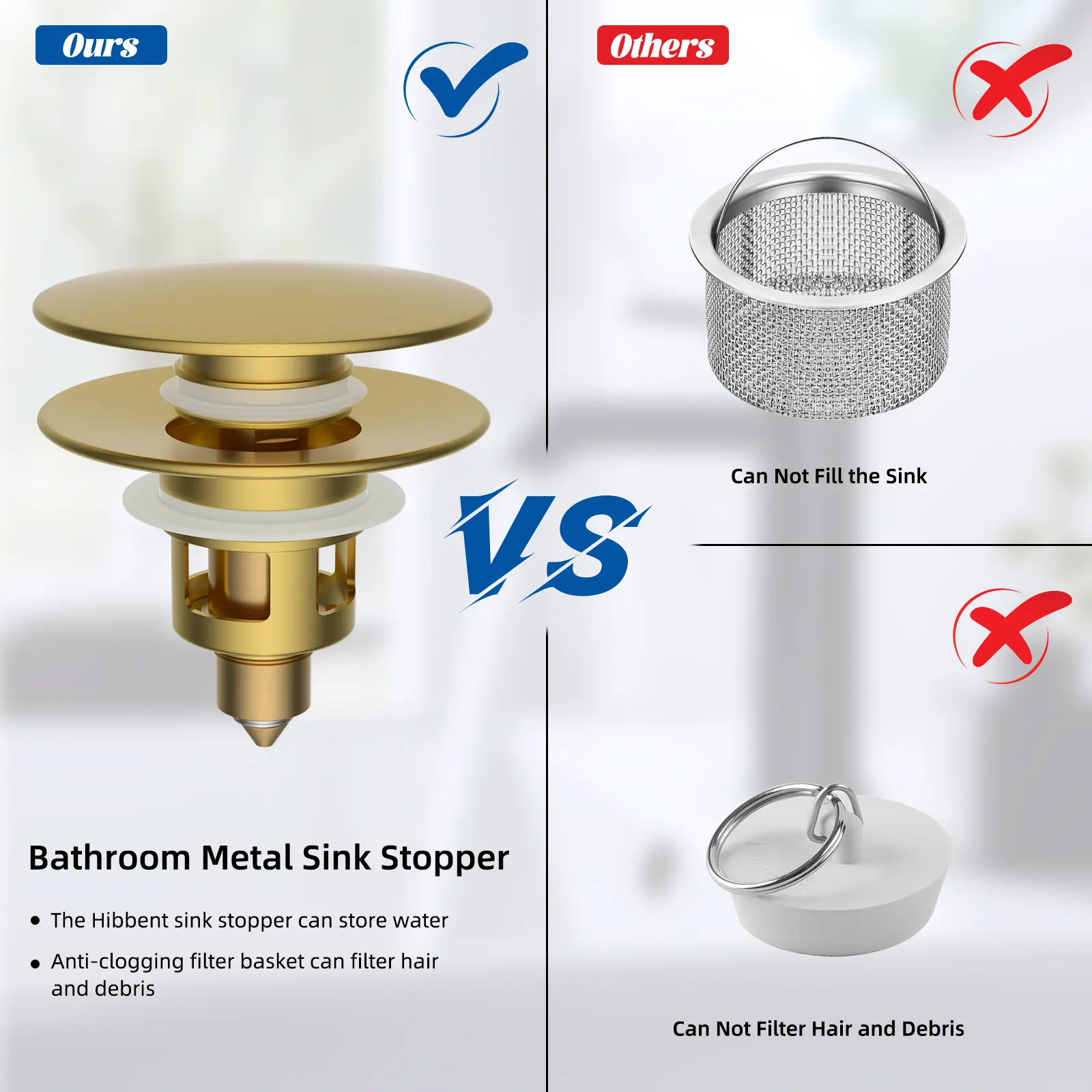 ·【Upgraded 2-in-1 Design】 The sink stopper is designed for stability, incorporating rubber rings around the hair-catching basket. Its flexible elastic mechanism boasts impressive rebound strength, allowing effortless switching between water storage and drainage with a simple press