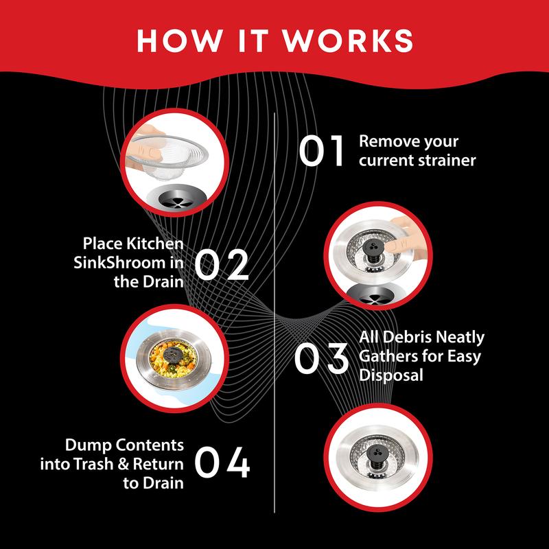 I’ve loved TubShrooms so tried this as a sample (for promotional ads). It’s great! Solved an issue where the sink would fill with water because the drain was stuck with food debris. This thing allows water to flow through, even while “clogged,” so you can do the dishes and get rid of the mess after!
