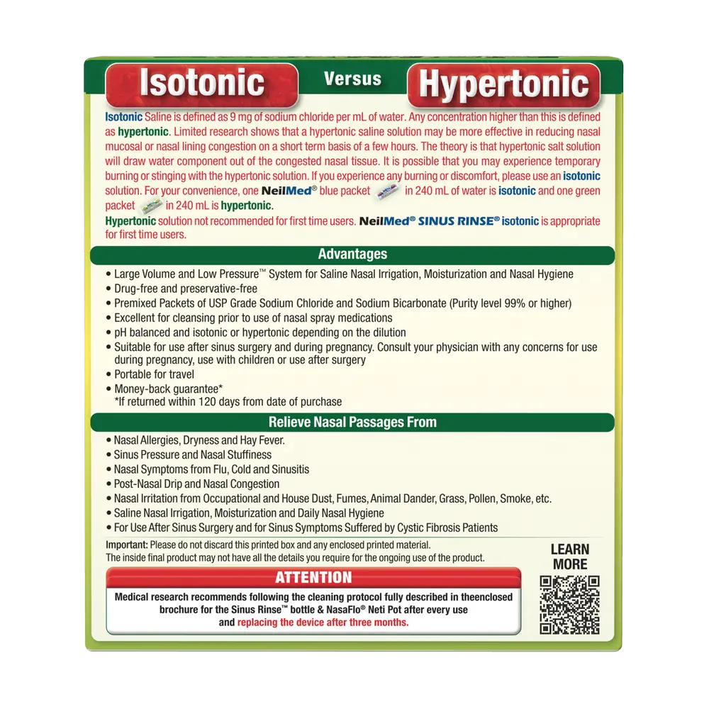 ¡Suitable for use after sinus surgery and during pregnancy. Consult your physician with concerns.