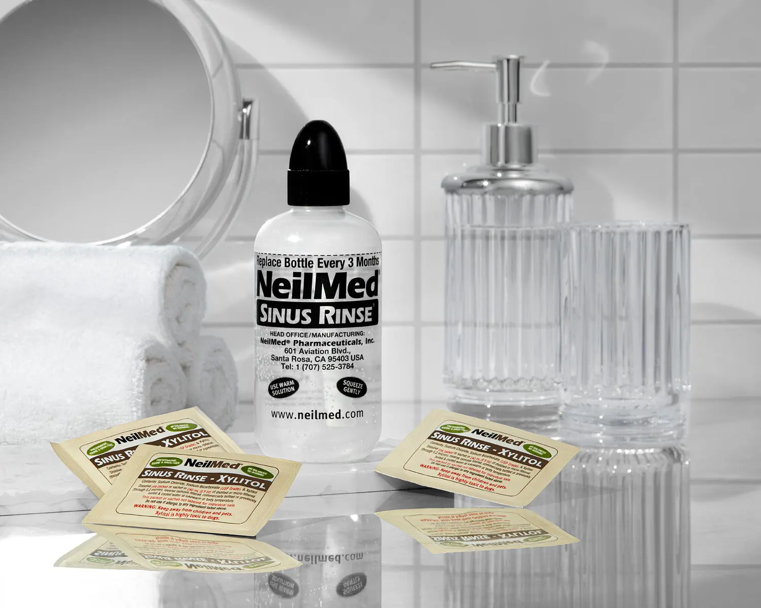 NeilMed SINUS RINSE is an easy squeeze bottle system that allows you to deliver the saline solution with positive pressure to clean the nasal passages thoroughly, while maintaining your head in an upright position. You have complete control of the pressure and volume of solution, ensuring a gentle, soothing and therapeutic experience. Daily rinsing is safe and will keep your nasal passages clean, healthy and open.
