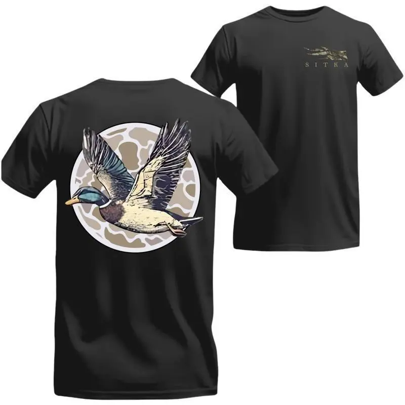 unknown Sitka T-Shirt - Flying Mallard Duck  with Circular Camo - Fashion Cotton   T-Shirt, Streetwear Crewneck Menswear Tops, Duck Hunting Shirt, cape let bee eugene emo clothes new york outfit affliction hoodie deku  outfits good graphic tees
