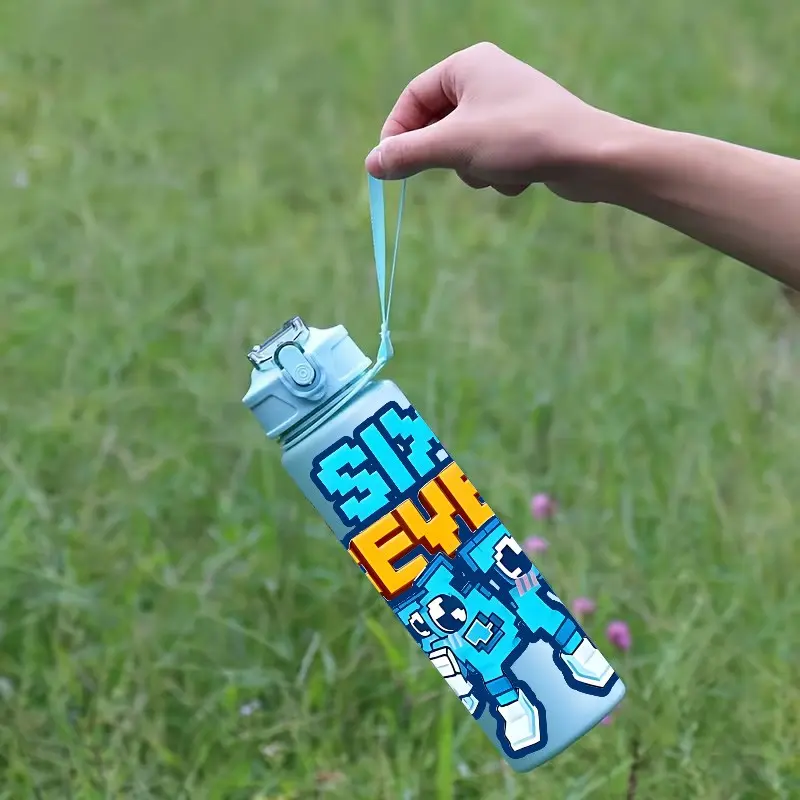 1pc Sixseven 26-Ounce Outdoor Water Bottle, 67 Printed Design Plastic Sports Drinking Bottle, Featuring a One-Touch Opening, Made of Plastic, Adorned with Cartoon Characters, Ideal for Travel, a Present for Her