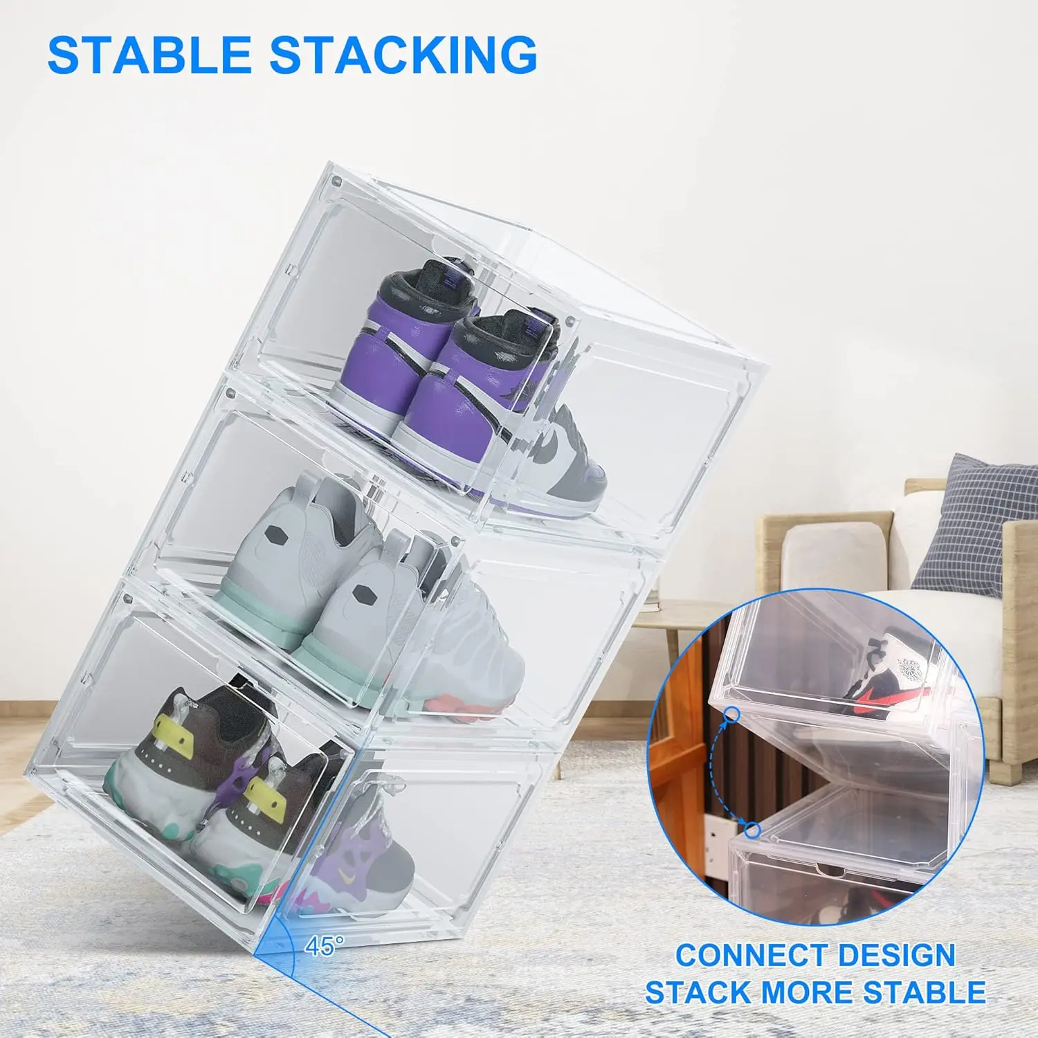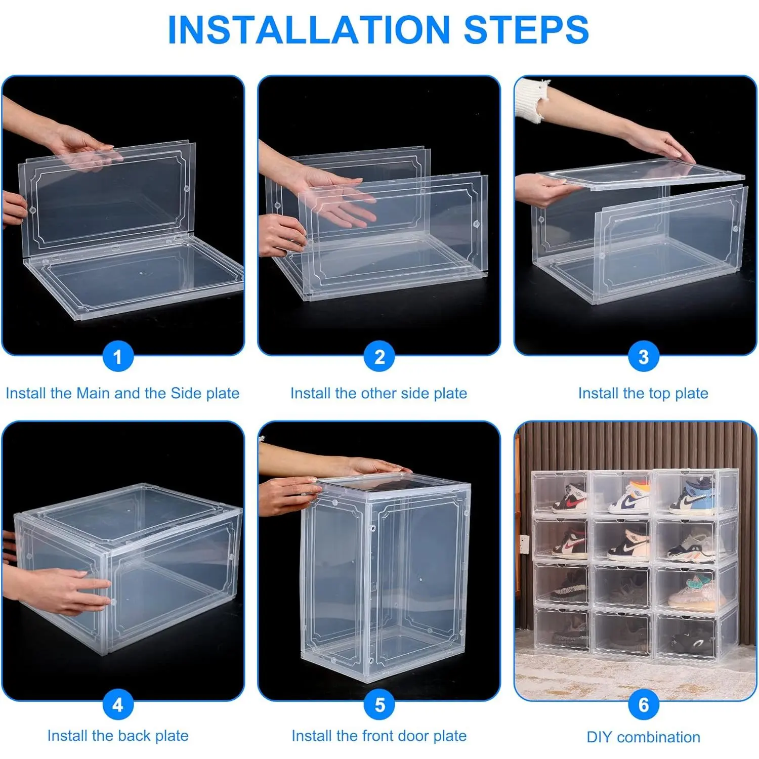 Easy to Assemble: You can assemble the shoe box according to the flow chart, and you can also DIY the number of stacked boxes according to your personal needs to flexibly create an shoe storage space.