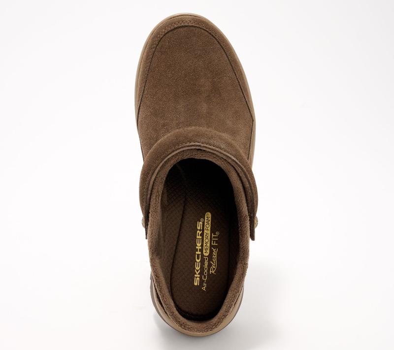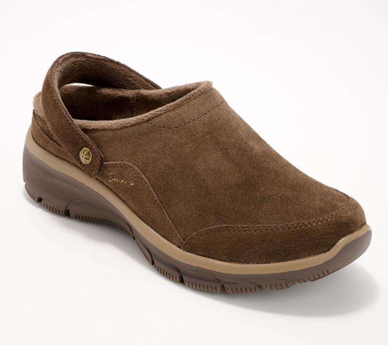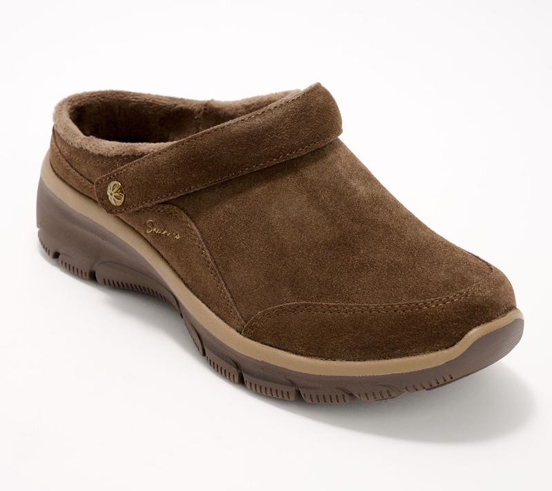 Skechers Foldover Mules. Weather Resistant, Soft Comfy & Warm #qvc #skechers #womensshoes #suedeshoes #muleshoes