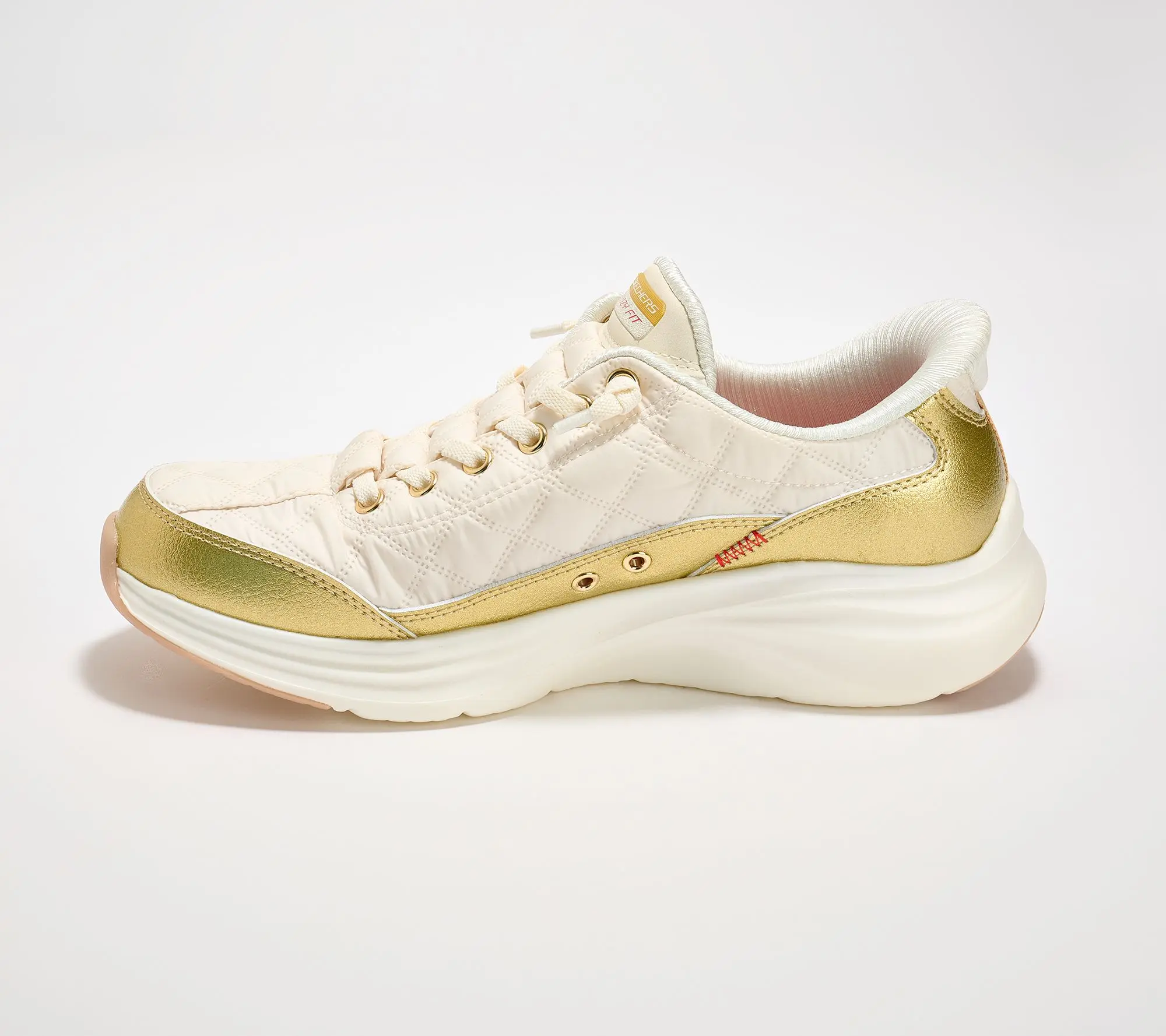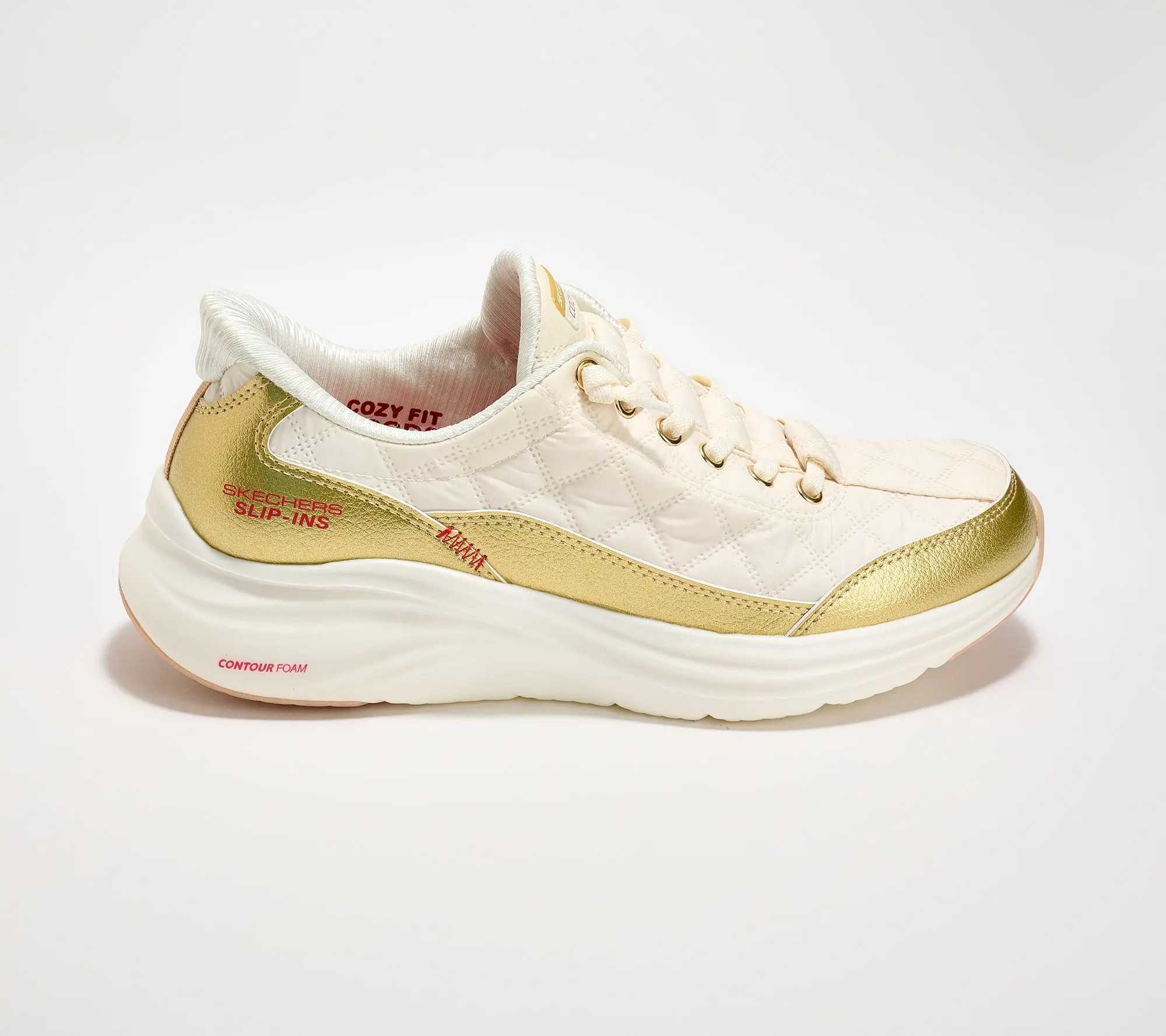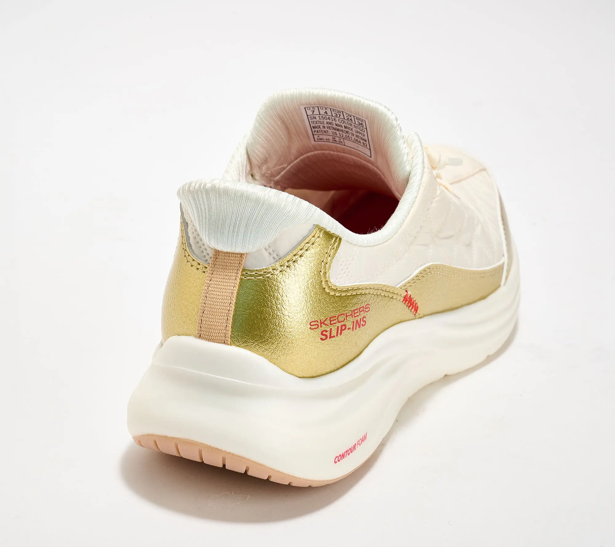 Metallics are having a moment. Happily, these Slip-insTM sneakers are not only a bright spot, they're also fabulously feel-good -- from the Skechers Memory Foam insole to the Contour Foam midsole to that delightful Heel Pillow. From Skechers.