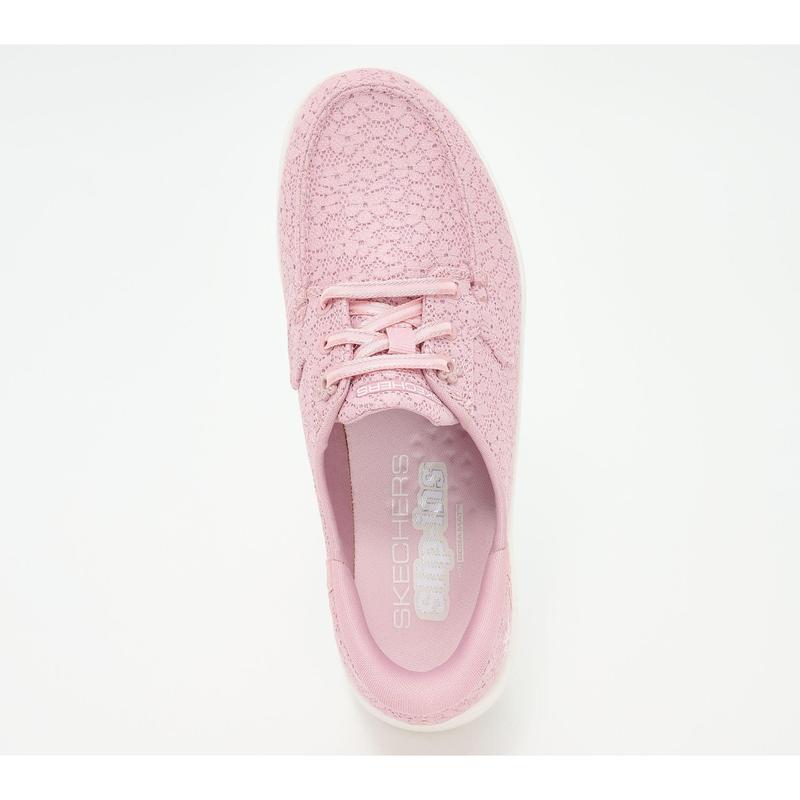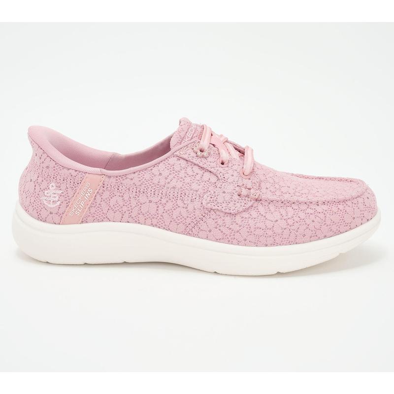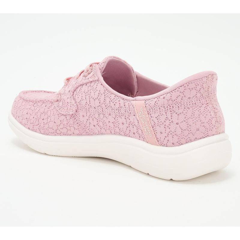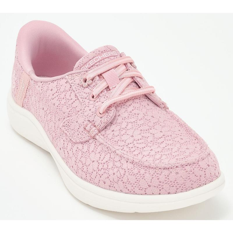 Skechers Slip-ins On-the-GO Flex Radiant Boat Shoes - Leilani. Stylish and versatile comfort combine in Skechers Hands Free Slip-ins : On-the-GO Flex Radiant - Leilani. Designed with our Heel Pillow, boater style features a floral lace upper with stretch laces, high-rebound Skechers Goga Mat insole, and lightweight ULTRA GO cushioning. Content: textile & manmade upper; balance manmade. Sole thickness: 1 7/8". Fit: true to size. COO: Imported.