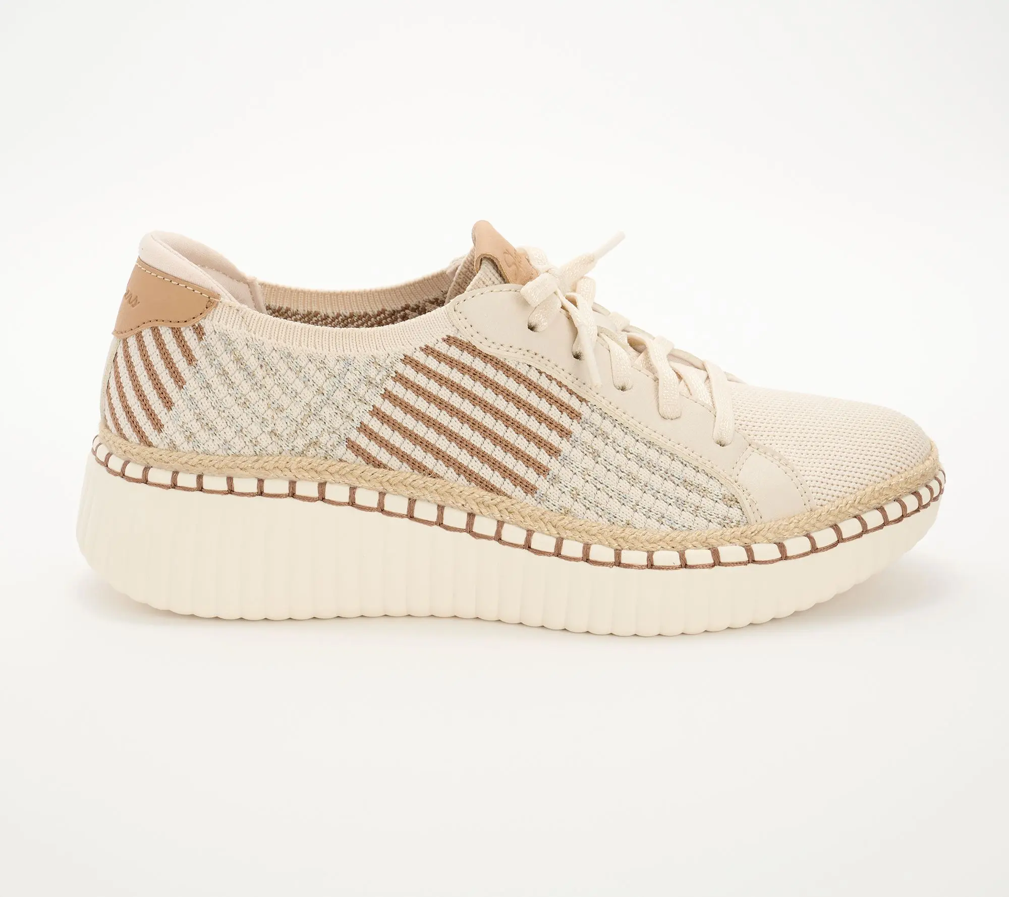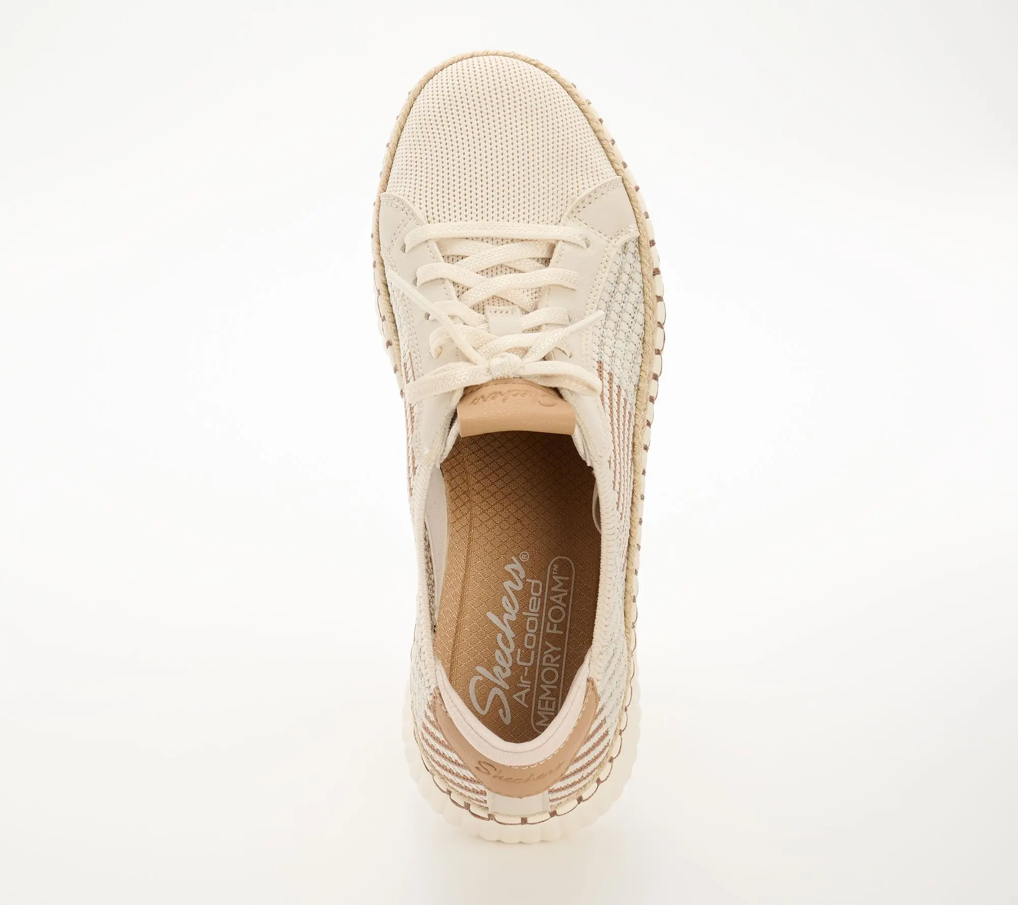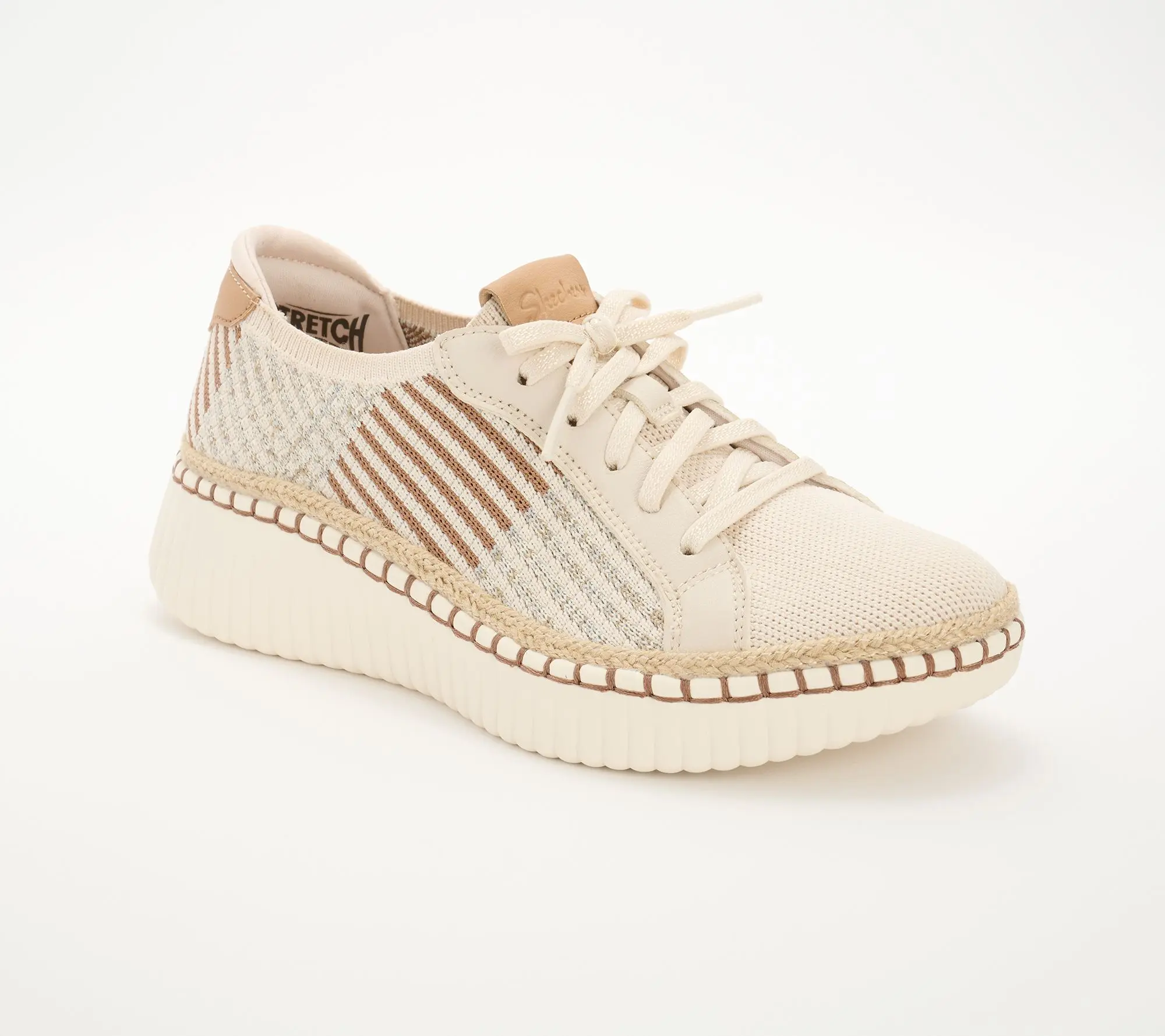 Skechers Wilshire Blvd Washable Vegan Sneakers - Breezy Stroll. Take a walk on the stylish side in easy-wearing comfort with Skechers Wilshire Blvd - Breezy Stroll. This Skechers No Tie Fit design features a knit and synthetic leather upper with faux laces, jute trim along the midsole, a Comfort Pillow at the heel, and a cushioned Skechers Memory Foam insole. Content: textile & man made upper, balance man made. Sole thickness: 1 7/8". Fit: true to size. COO: Imported.