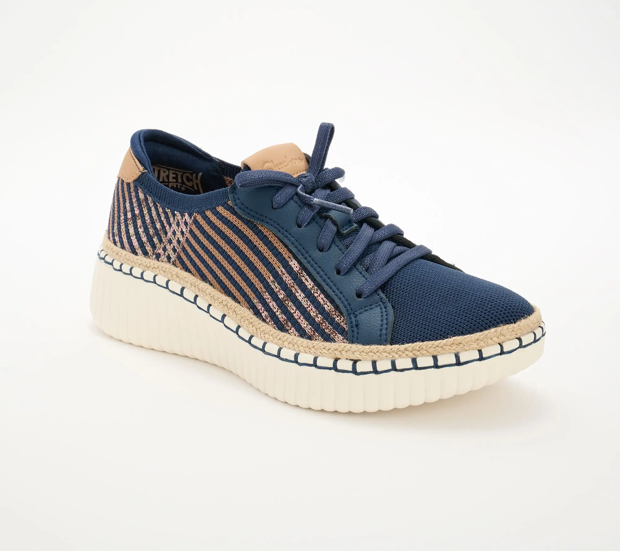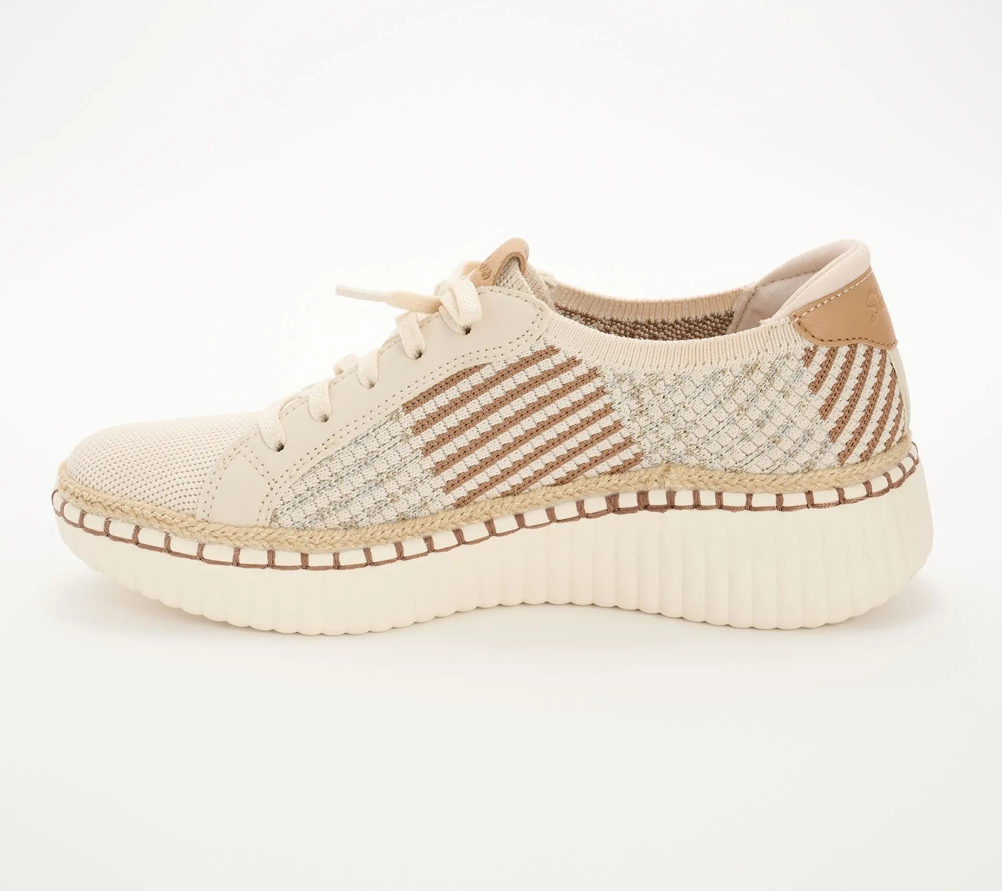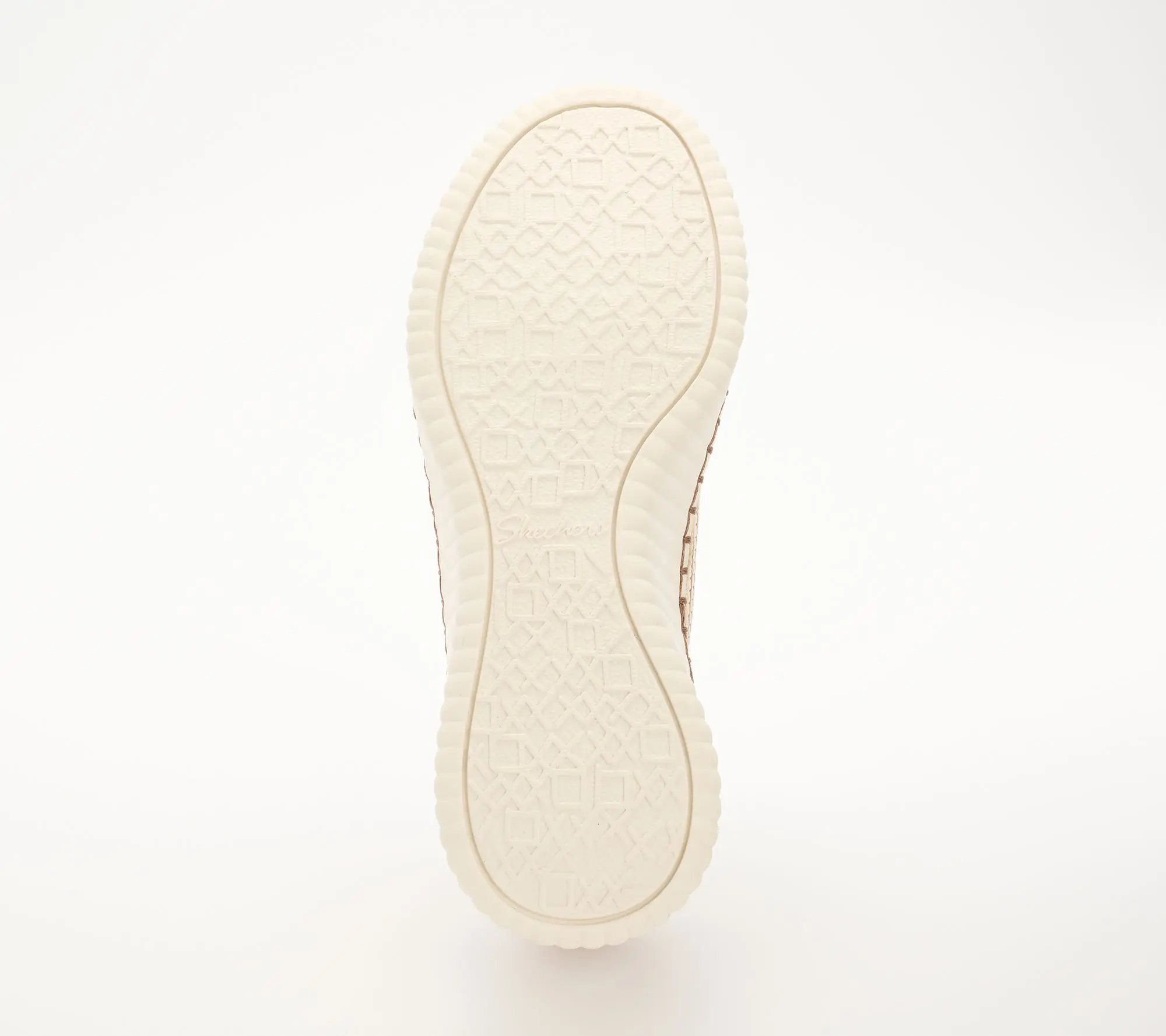 Skechers Wilshire Blvd Washable Vegan Sneakers - Breezy Stroll. Take a walk on the stylish side in easy-wearing comfort with Skechers Wilshire Blvd - Breezy Stroll. This Skechers No Tie Fit design features a knit and synthetic leather upper with faux laces, jute trim along the midsole, a Comfort Pillow at the heel, and a cushioned Skechers Memory Foam insole. Content: textile & man made upper, balance man made. Sole thickness: 1 7/8". Fit: true to size. COO: Imported.