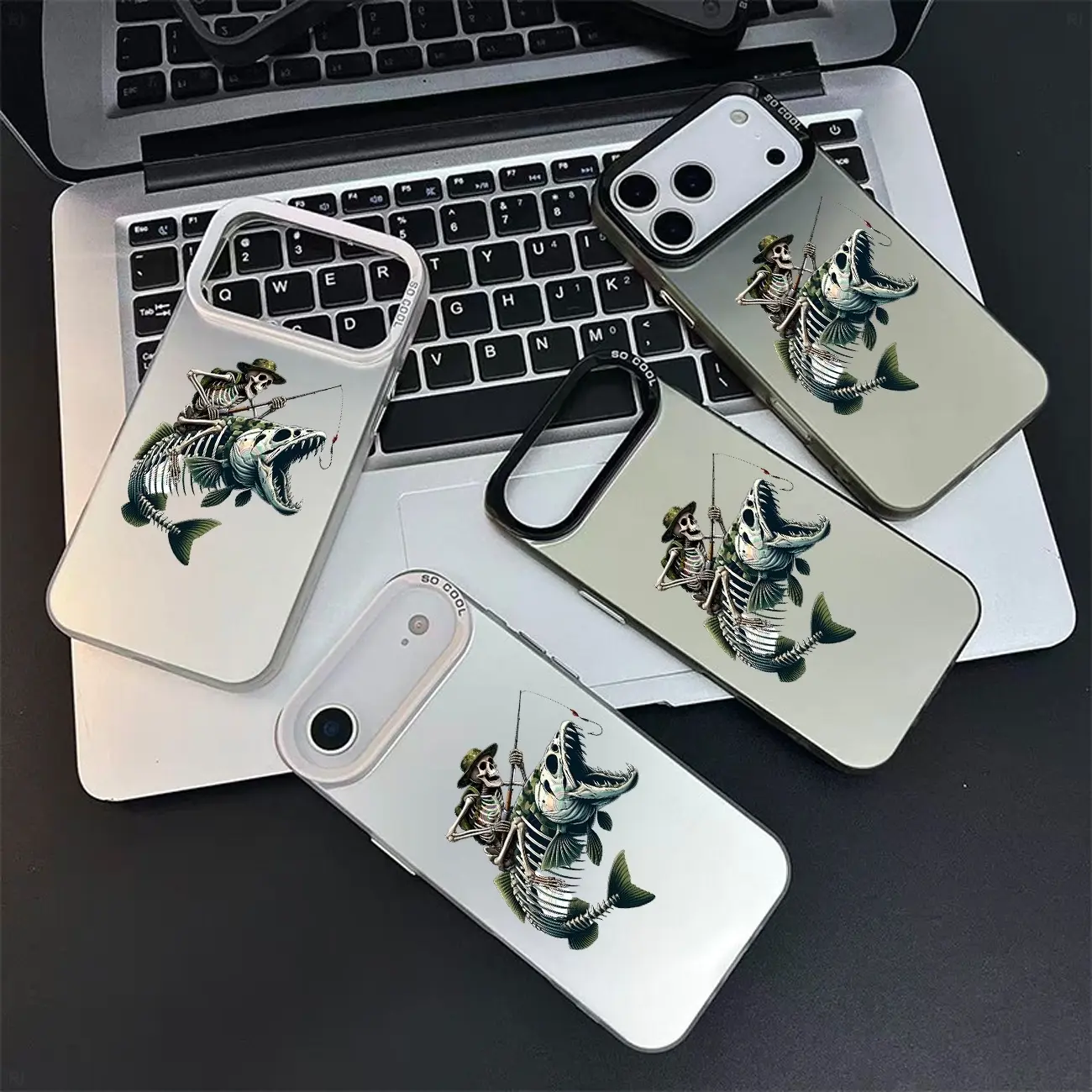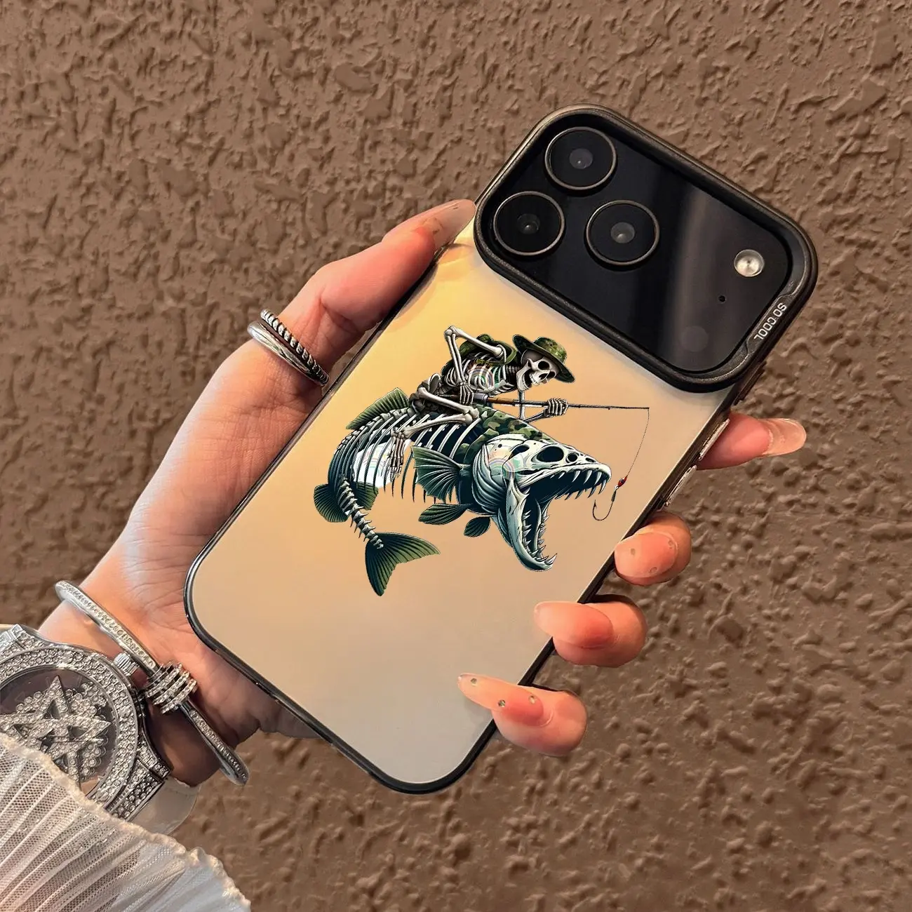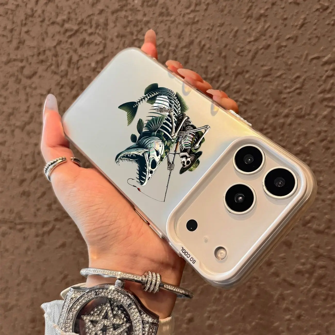 Skeleton Fishing Pattern Case for iPhone 17 Pro Max 17 Air 16/15/14/13/12/11 Pro Max XR XS E Plus Retro High-end Shockproof Drop Screen Protection Cute Durable PC Smartphone Cover