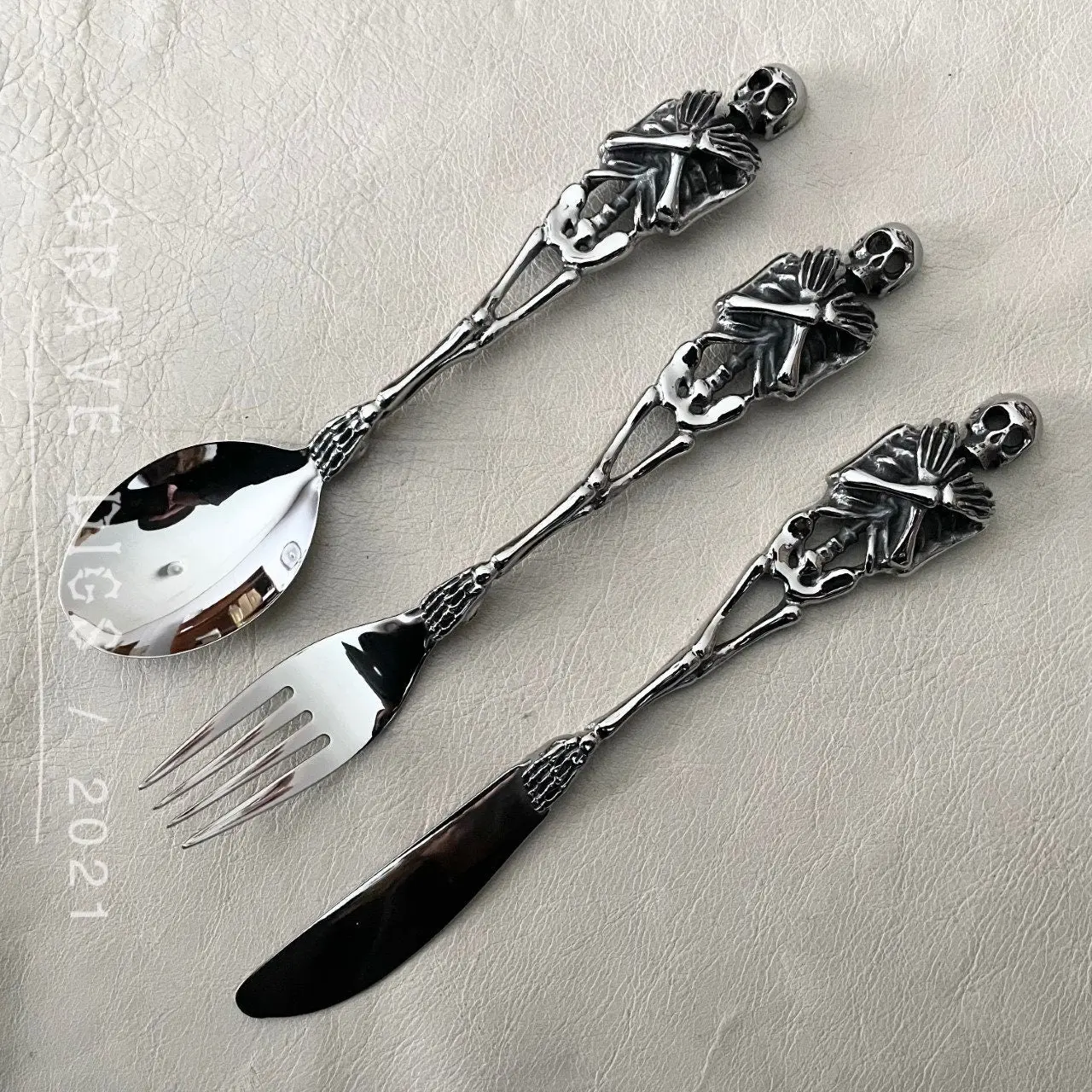 Skeleton Flatware Set | 1 Spoon + 1 Fork + 1 Knife Kitchen Tableware | Gothic Halloween Silverware
